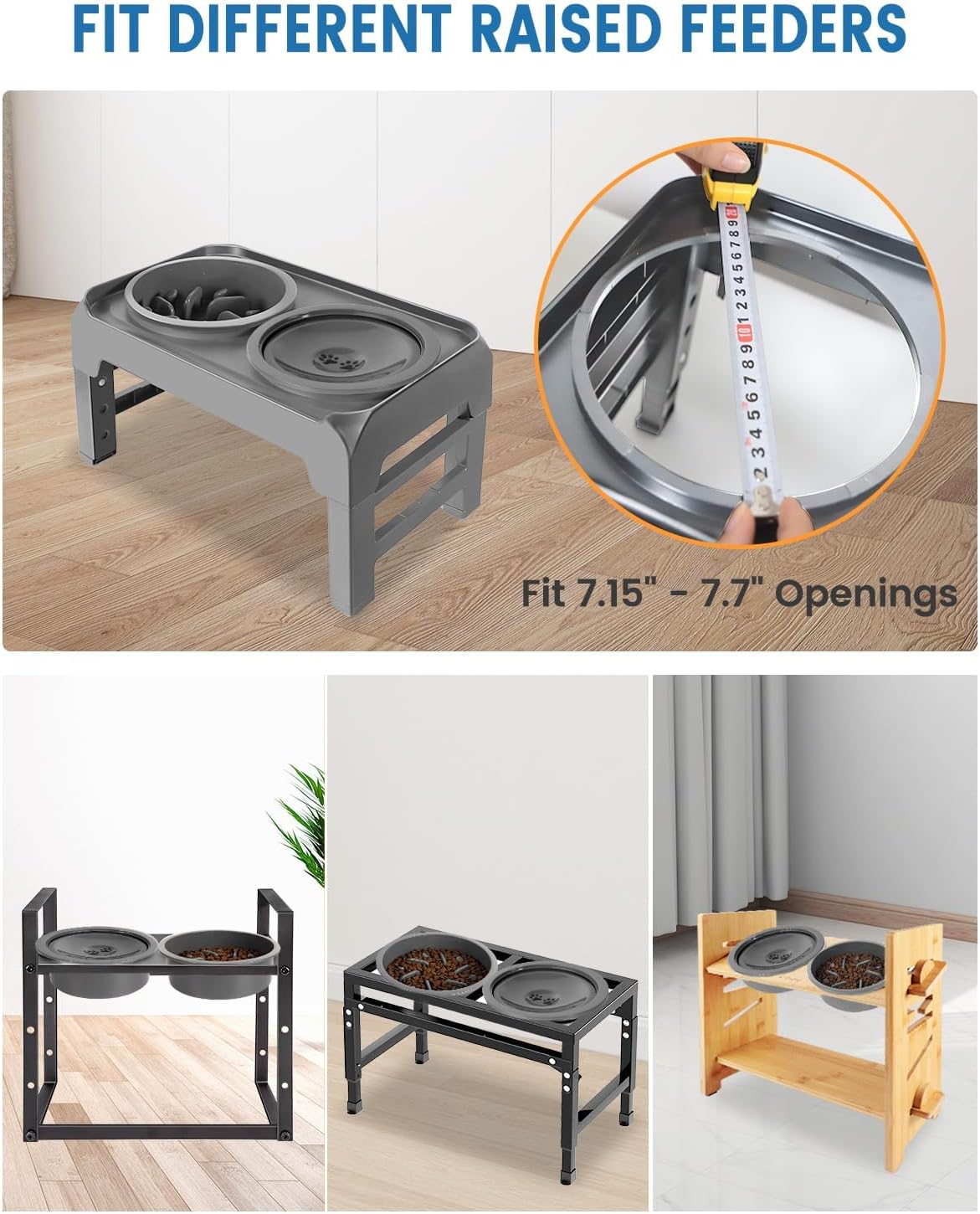About this item No Spill & No More Mess: The splash proof rim and floating disk prevents water from overflowing and splashing to keep floor dry and tidy. It also keeps dogs’ mouth hair or ears from getting wet and dripping water everywhere, especially for messy drinkers and dogs with long ears or long beard. Also great for cats that like to play with water. Slow Water Feeder: Floating disk design makes a small amount of water come out of the holes when dogs’ tongue presses the disk, which effectively helps slow down a sloppy drinker to avoid choking, vomiting or gulping. Keep Water Clean: The floating cover helps prevent the dust, dirt or pet hair from falling into the water to provide your dog with clean water all day. Fits Different Raised Feeders: The anti spilling water bowl with internal diameter of 7.1” and external diameter of 7.9” can be used in a raised feeder stand with opening diameter between 7.15” and 7.7”. Please measure your elevated feeder openings before buying. Safe Material & Easy to Clean: The no drip water bowl is made of food grade PP material, non-toxic and durable for pets to use. The floating disk can be taken apart for easy clean, recommended to clean twice a week. › See more product details