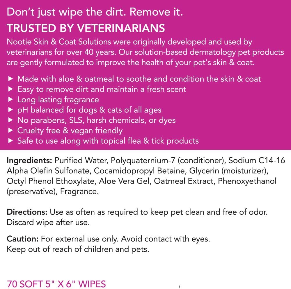The Wipe That Washes Nootie Waterless Shampoo wipes have a soap-free foaming lather that gently washes away dirt and germs without the mess, leaving your dog clean and smelling great between baths.