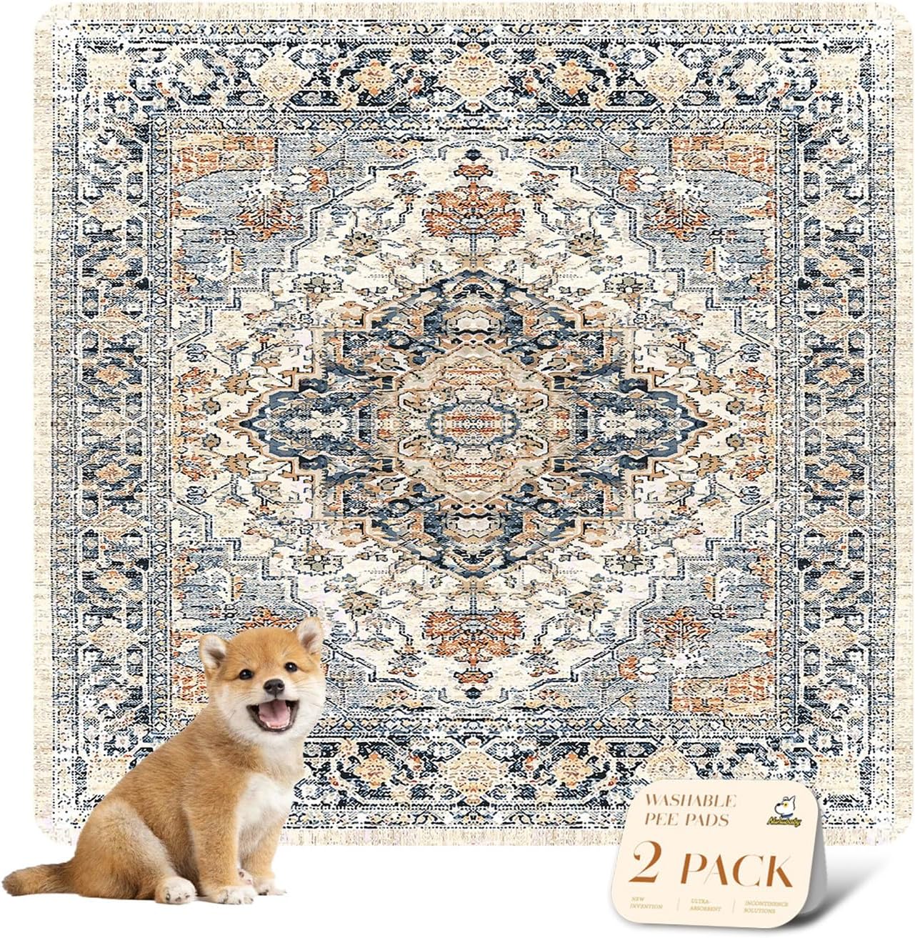 About this item Stylish Pet Supplies: Available in various trendy colors and patterns, our ultra-absorbent and leak-proof washable dog pee pads come in a variety styles. Not only are these reusable pee pads for dogs perfect for protecting your home surfaces, but they also add a touch of style to your home. A Cutting-Edge Waterproof and Leak-Proof Design: Our multi-layered reusable dog pee pads feature super absorbent surface, breathable leakproof coating and upgraded non-slip backing that prevents leaks and odors, effectively absorbing liquid. These washable pee pads protect your floors and furniture from dog scratches, hair and drool. Safety Non-Slip Pee Pads: The non-slip backing keeps our puppy pee pads securely in place while providing comfort and stability for your beloved pet. These waterproof pads are safe for everyday indoor high traffic area from pet activity.(Keep the bottom of the rug always be dry.) Versatility for Various Applications: Our washable puppy pads double as a comfortable mat for crates, floor, couch, carpets, or car for use while offering a safe surface for your furry friend to play, rest, or sleep on. These dog pee pads are perfect for housebreaking, litter box training or traveling. Machine Washable and Durable: Don't worry about fading and damage. Designed to withstand repeated washing urine soaking, our reusable potty pads for dogs offer a budget-friendly and sustainable alternative to options. › See more product details