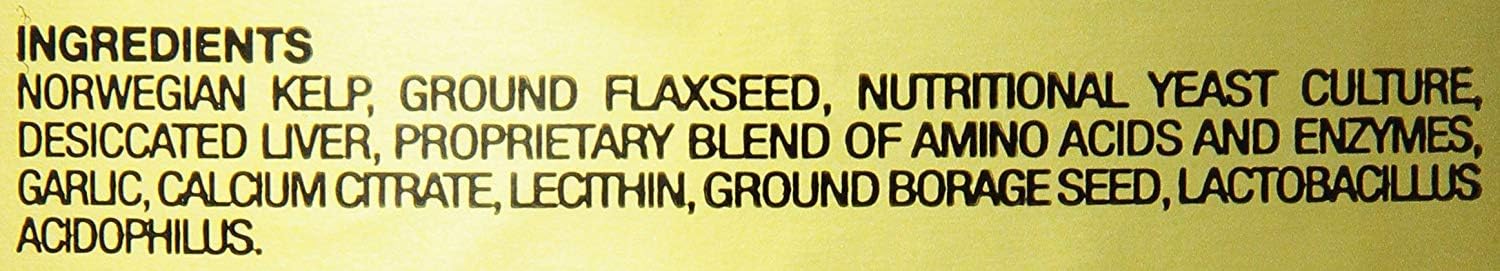 - Active Ingredients: Desiccated Liver (Pork), Norwegian Kelp, Bee Pollen, Imported Yeast Culture, Flaxseed, Lecithin, Garlic Concentrate, Lactobacillus Acidophilus, Calcium CitrateSee more