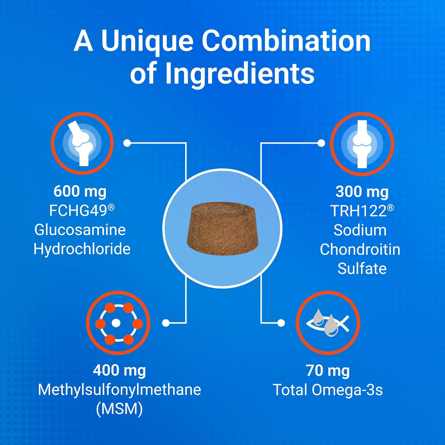 - Active Ingredients: Glucosamine Hydrochloride, Methylsulfonylmethane (MSM), Sodium Chondroitin Sulfate