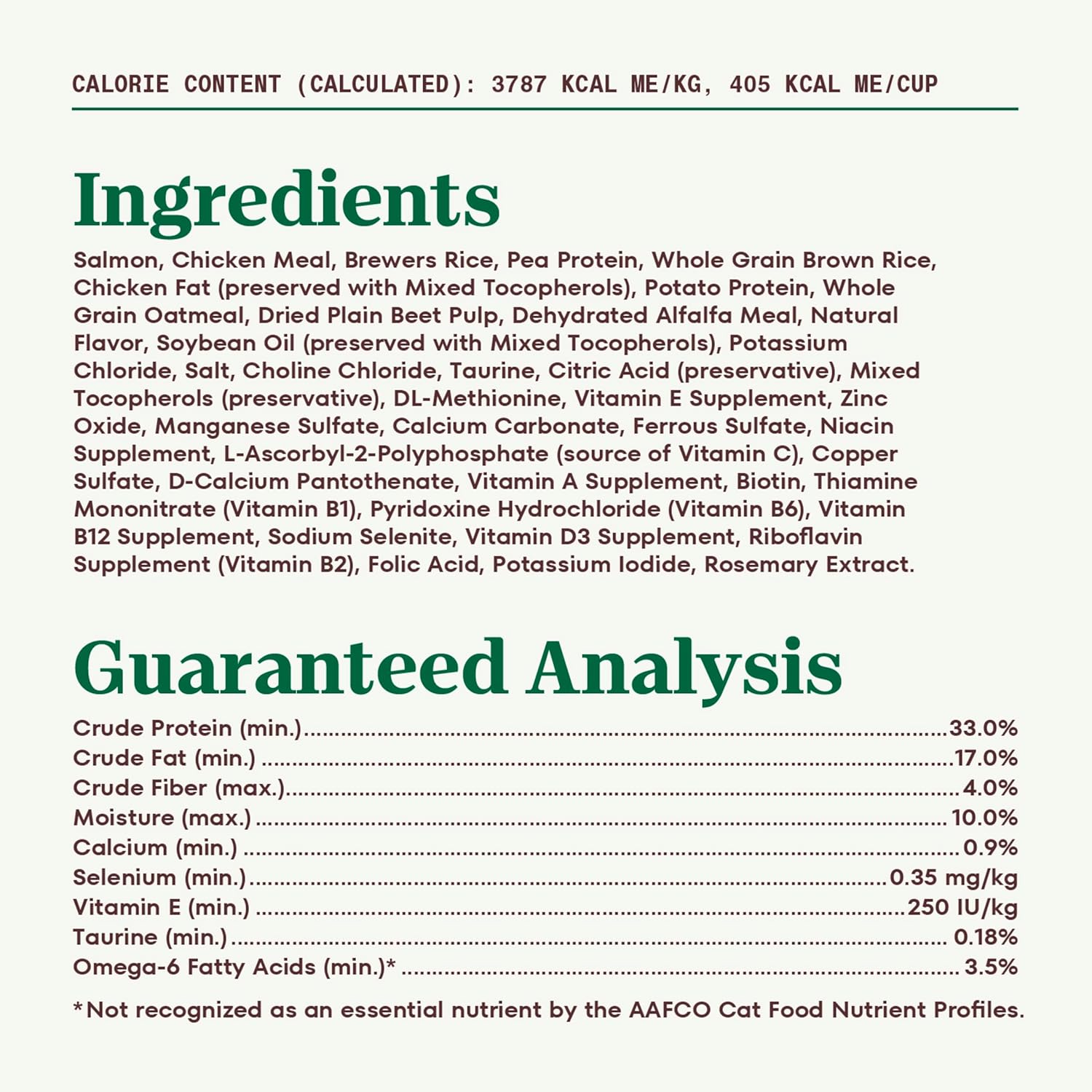 - Included Components: Dry Cat Food