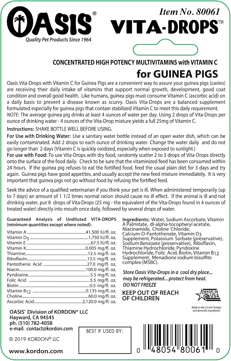 - Model Name: OASIS # 80061 VITA DROPS FOR GUINEA PIGS 2 OZ