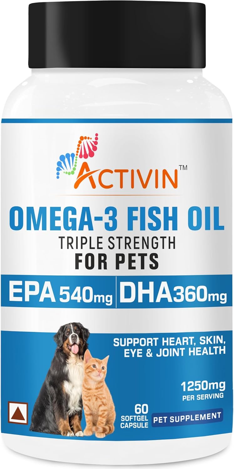 - Model Name: Activin Omega - 3 Fish Oil Triple strenghth Softgel Capsules for Pets | for Allergy, Itch Relief - Supports Dry Skin, Joints - Dog and Cats Skin and Coat Supplement | 60 Softgel Capsules