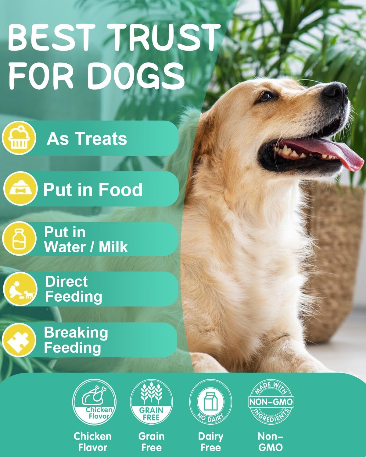 - Directions: Use continuously for 4 to 6 weeks to observe the effect as each dog's physical condition varies. Use daily for optimal results.
