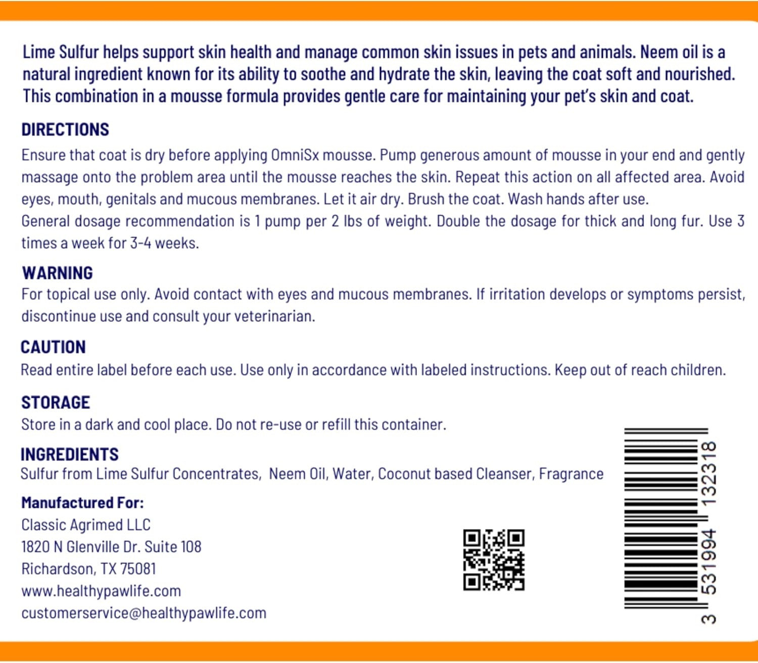 OMNISx is a powerful yet gentle leave-on therapeutic mousse formulated to relieve itching, inflammation, and skin infections in companion animals including dogs and cats. Based on Lime Sulfur based concentrates, along with a coconut-based foaming system and a touch of soothing neem oil, OMNISx delivers natural, effective relief—without rinsing. Ideal for use between baths to calm, cleanse, and protect problem skin.