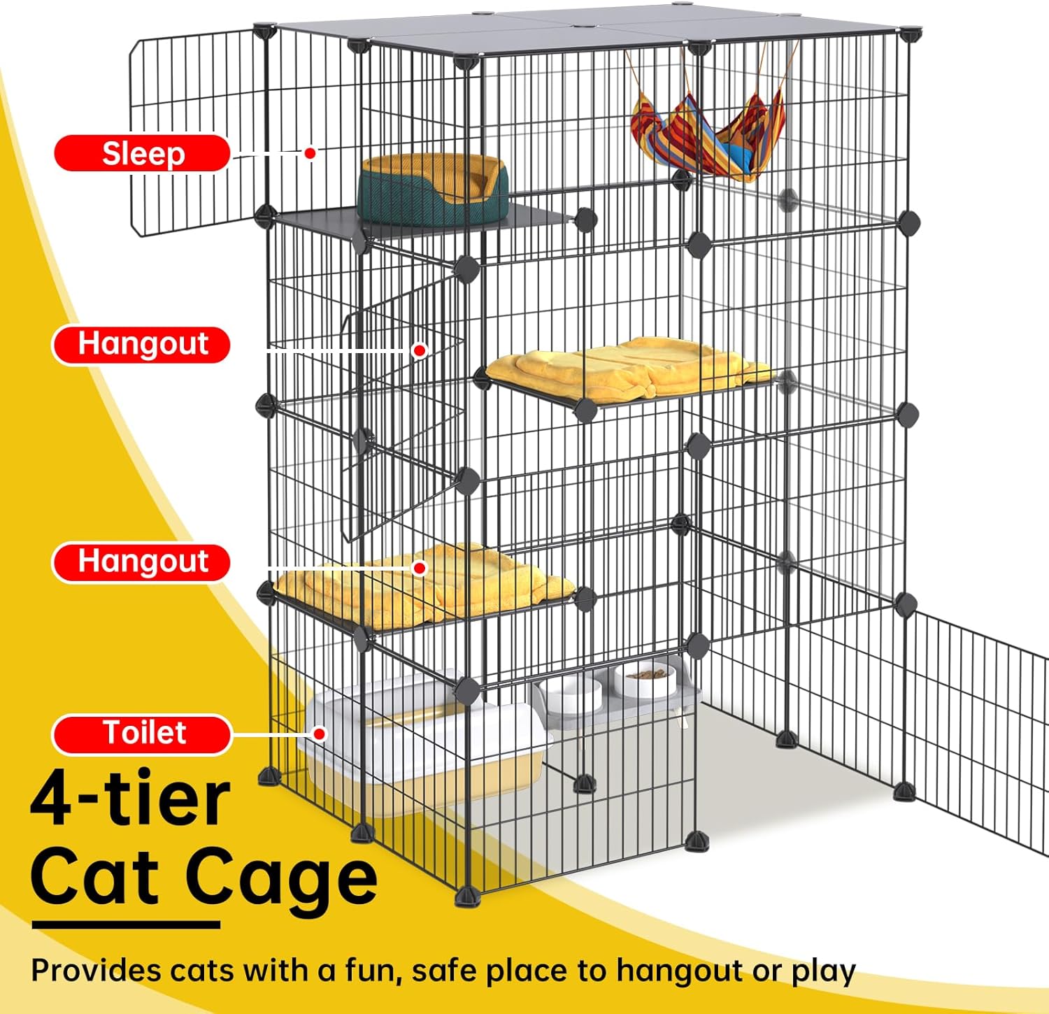 - Directions: Oneluck 4-Tier 47.2 Inch Large Cat Cages DIY Cat Playpen Detachable Metal Wire Kennels Cat Crate Exercise Extra Place Ideal for 1-2 Cat