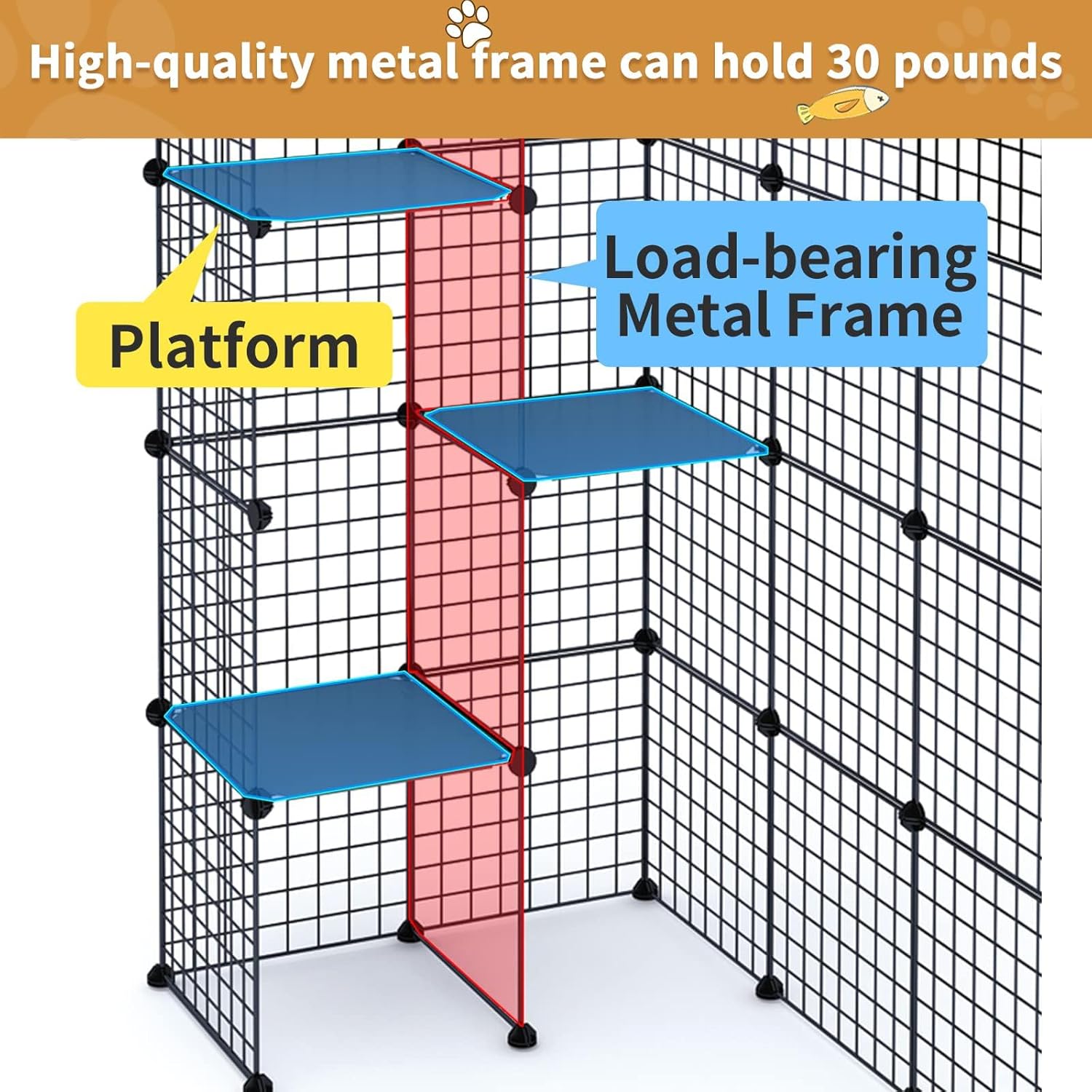 Oneluck Large Cat Cages DIY Cat Playpen Detachable Metal Wire Kennels Cat Crate Exercise Extra Place Ideal for 1-2 Cat