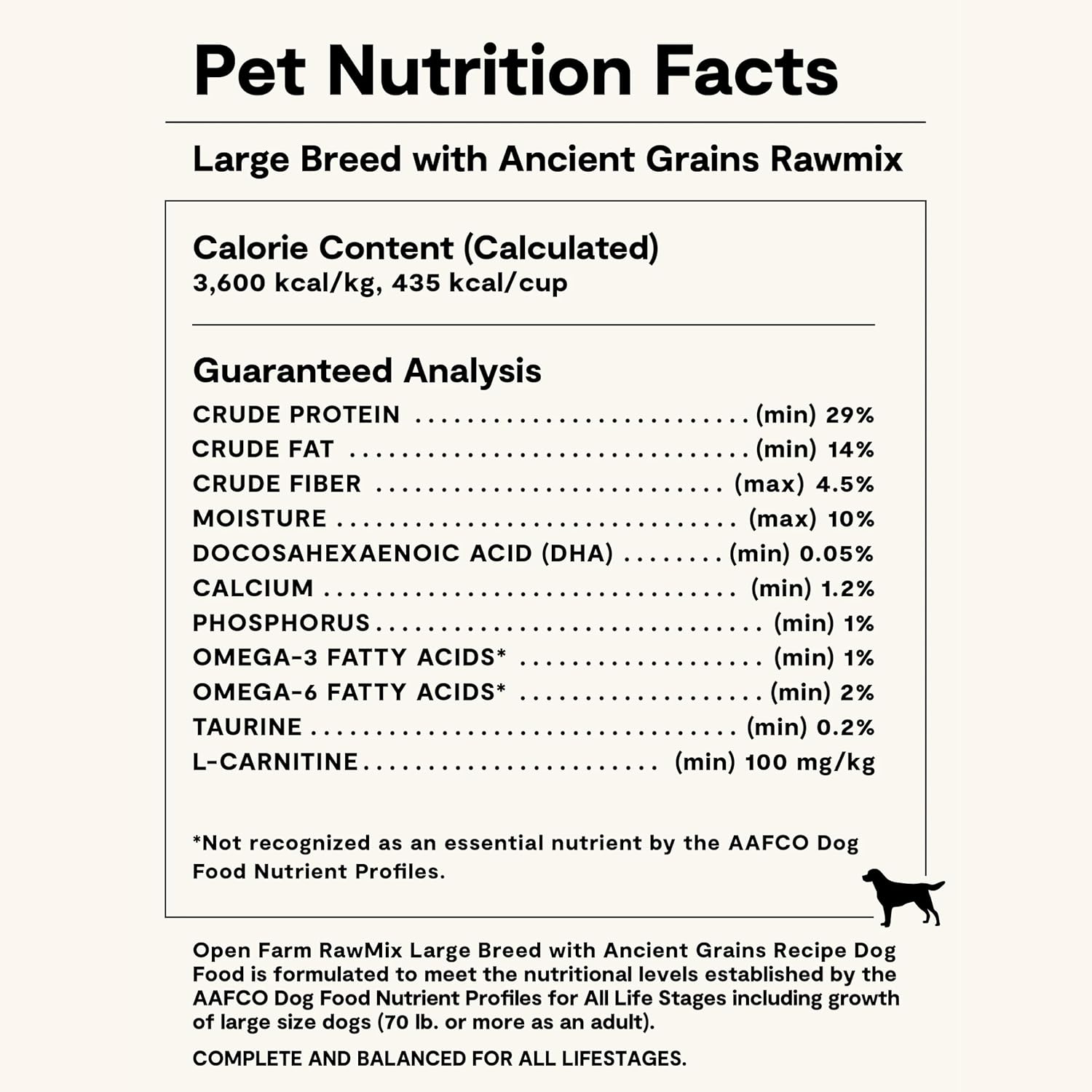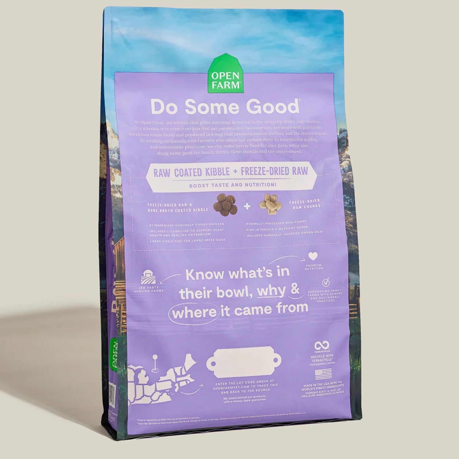 About this item All meats humanely raised and G.A.P. certified, no added antibiotics or hormones, 100% traceable ingredients, non-GMO grains vegetables and fruit. Large kibble size for large breed dogs, packed with natural nutrition tailored for large breed dogs. Nutritious blend of Harvest Chicken and Homestead Turkey, Freeze-dried raw, bone broth coated kibble with freeze-dried raw chucks. High protein kibble, nutrient dense organ meats. Healthy Ancient Grains Protein Rich, whole-prey kibble, including mix of high-quality animal proteins including chicken and turkey, as well as nutrient dense organ meat. Provides delicious taste that dogs love. Large kibble size for large breed dogs Packed with natural nutrition tailored for large breed dogs. › See more product details