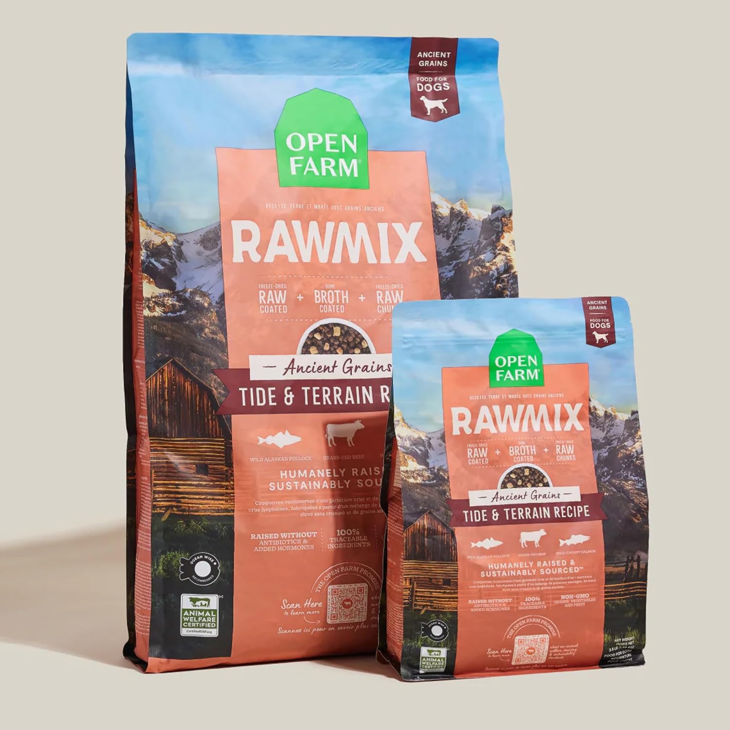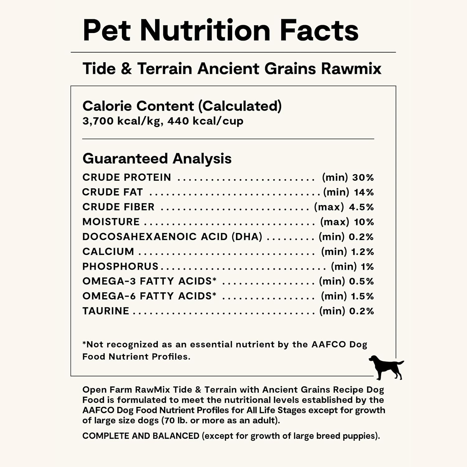 About this item All fish OceanWise Certified, All meats humanely raised and G.A.P. certified, no added antibiotics or hormones, 100% traceable ingredients, Non-GMO grains vegetables and fruit. Vet formulated., Non-GMO grains vegetables and fruit. Vet formulated. Nutritious blend of wild-alaskan pollock, wild caught salmon, grass-fed beef, freeze dried raw, bone broth coated kibble with freeze-dried raw chunks. High protein kibble, nutrient dense organ meat. Healthy ancient grains Protein Rich, whole-prey kibble, including mix of high-quality animal proteins including wild alaskan pollock, wild-caught salmon and grass-fed beef, ancient grains, as well as nutrient dense organ meat. provides delicious taste that dogs love. Easy-to-serve complete ancestral meal: Complete ingredients that help your dog be at their best. Optimal Nutrition: High quality animal protein, sustainabily sourced, G.A.P. and Oceanwise certified for optimal nutrition › See more product details