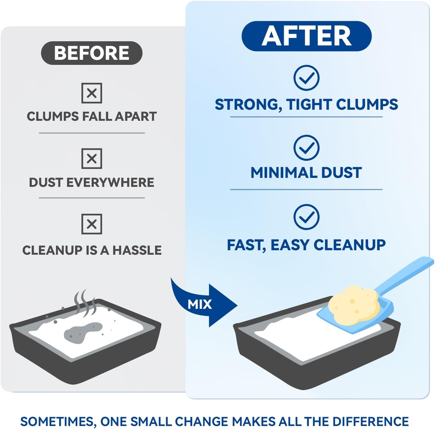 About this item 【100% Natural Ingredient】OPET Cat Litter adopts 100% natural corn and cassava starch, eco-friendly for your cats and family. Thanks to its natural and non-irritating properties, this plant-based natural litter ensurs the health of your cats and especially for your little kittens. 【Fast & Strong Clumping】This clumping kitty litter can form clump within 5 seconds, and the clumps stays 3 times stronger than other normal cat litters, not easy to loose. Crating a cleaner environment for your cats 【Very Easy to Clean】Due to its outstanding clumping ability, cat litter is not easily loose after clumping and can be easily removed. And this cat litter can dissolve in water, so it can be safely flushed into the toilet. 【99.9% Dust Free】Dust free has always been our original intention in designing cat litter. This clumping litter effectively controls dust through the combination of large, medium, and small particles.Protect you from dust troubles. 【ONE Scoop Cassava Makes Difference】Using clay, tofu, or other cat litters? Just add one scoop of OPET cassava cat litter to dramatically improve clumping and drastically reduce dust. Tips***Using tapioca litter ALONE has poor odor control and causes more tracking. › See more product details