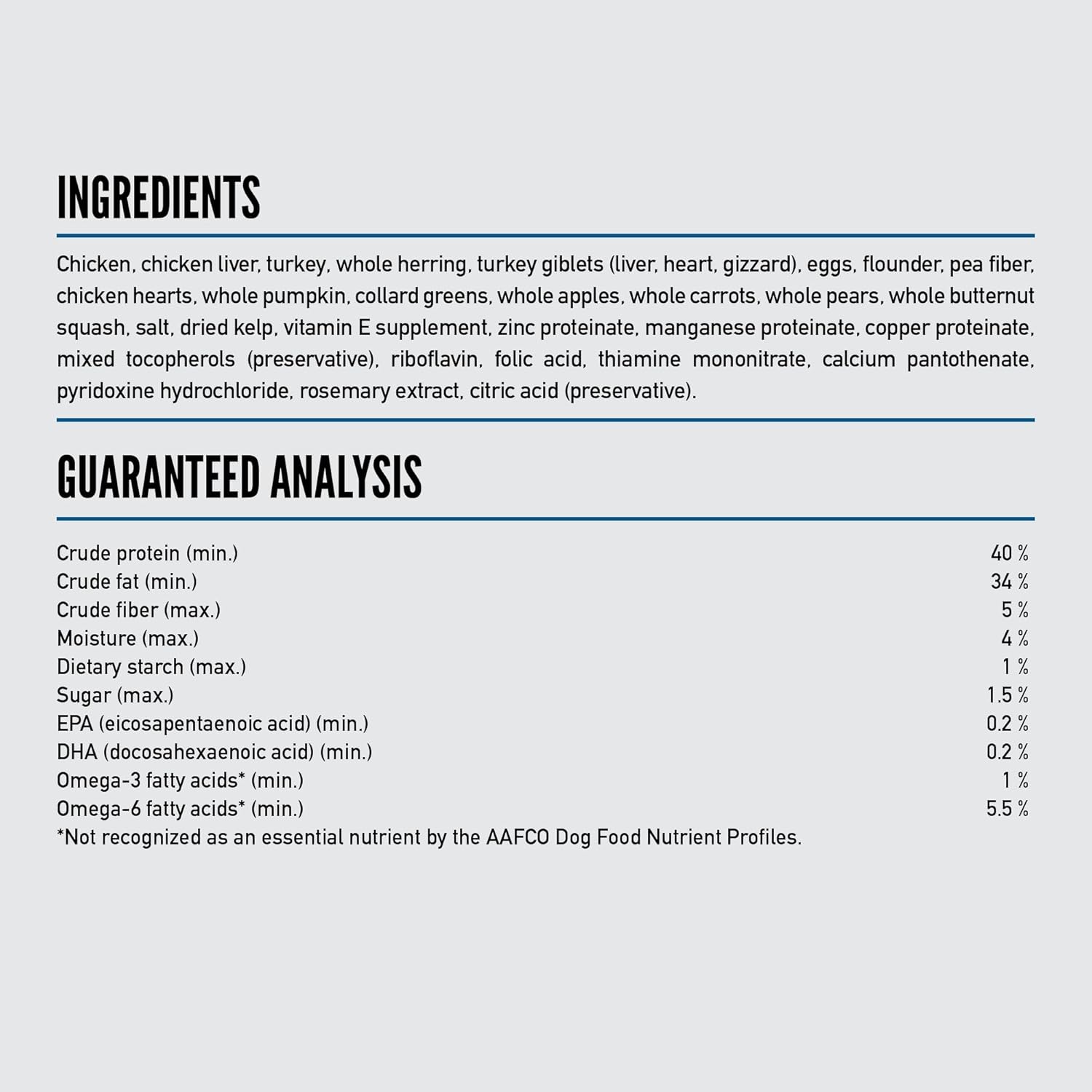 - Breed Recommendation: ORIJEN Freeze-Dried Original Dog Food is formulated to meet the nutritional levels established by the AAFCO Dog Food Nutrient Profiles for All Life Stages, except for growth of large size dogs (70 lb. or more as an adult).