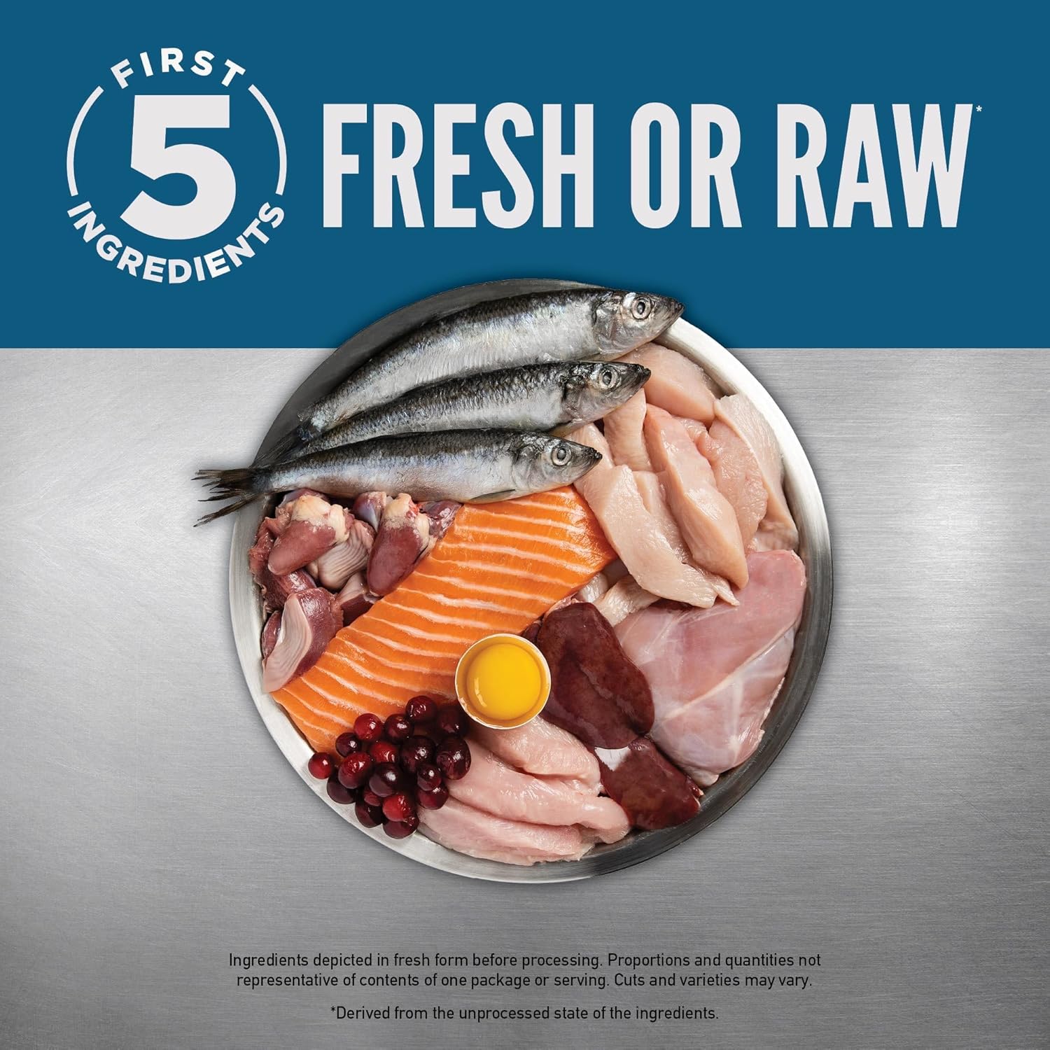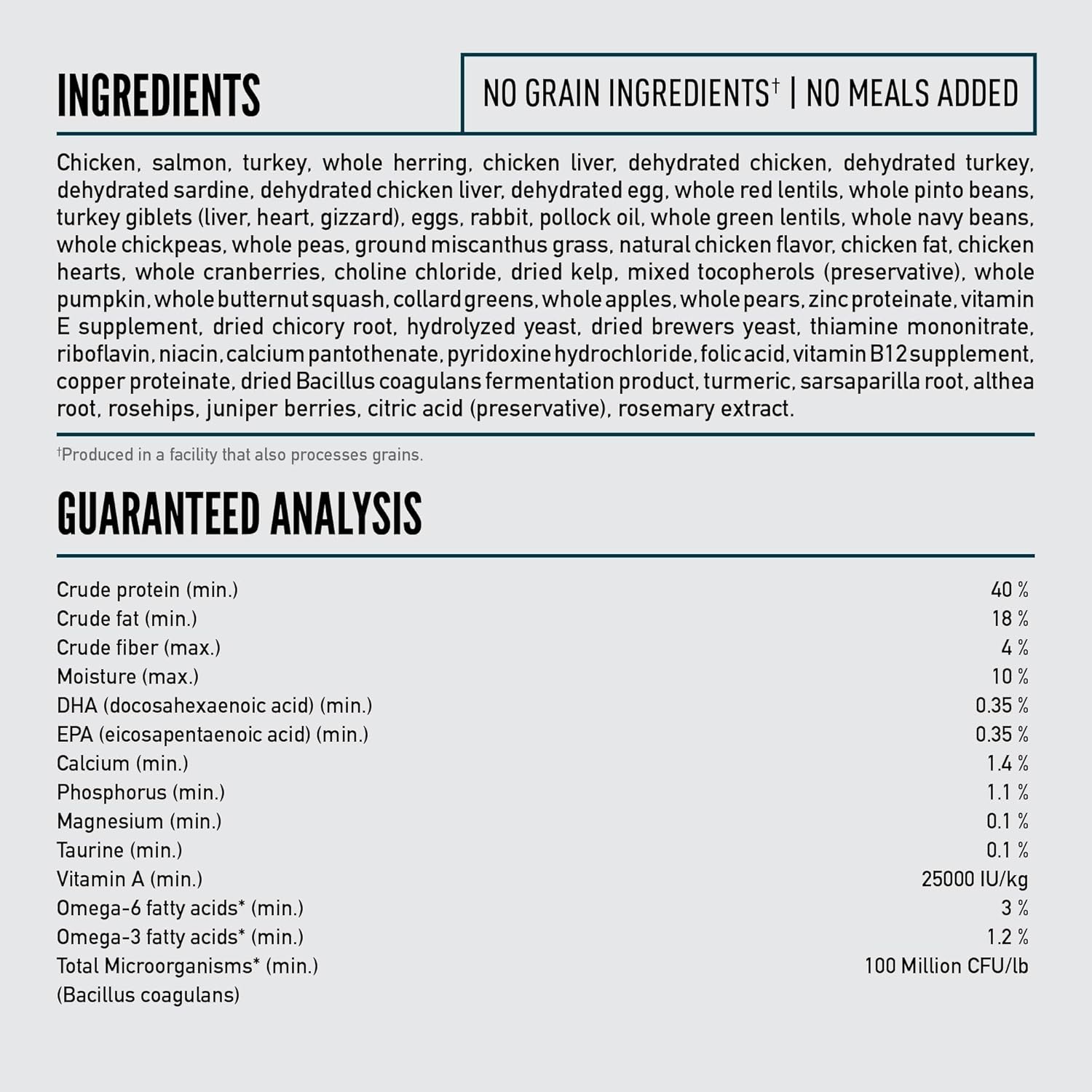 Help your senior cat thrive with the power of protein-rich ORIJEN Grain Free* GUARDIAN SENIOR Dry Cat Food. The ORIJEN senior cat food diet is made with amino and fatty acids with nutrients that support your mature cat's needs as they grow older. With a Biologically Appropriate recipe, this grain free* dry cat food is based on what your feline's ancestors consumed in the wild. Containing up to 90 percent** premium animal ingredients, this ORIJEN cat food provides a high protein diet that will nourish a lifetime of adventures. The first five ingredients of this high protein cat food are fresh*** or raw**** fish or poultry, including salmon, duck, chicken, turkey and flounder, giving your cat a strong source of essential protein, vitamins and minerals. ORIJEN WholePrey ingredients including organs and bones provide your cat with the most succulent and nutrient-rich parts of prey. This senior cat food offers eight key health benefits, helping support immune support, digestion, healthy skin and coat, muscle and weight maintenance, healthy joints and bones, cognitive function and brain health, heart health and eye health. Nourish as Nature Intended. *No added grain ingredients. Produced in a facility that also processes grains. **Approximate 90% ***Our included fresh ingredients are delivered refrigerated and our included raw ingredients are delivered frozen ****Derived from the unprocessed state of the ingredients