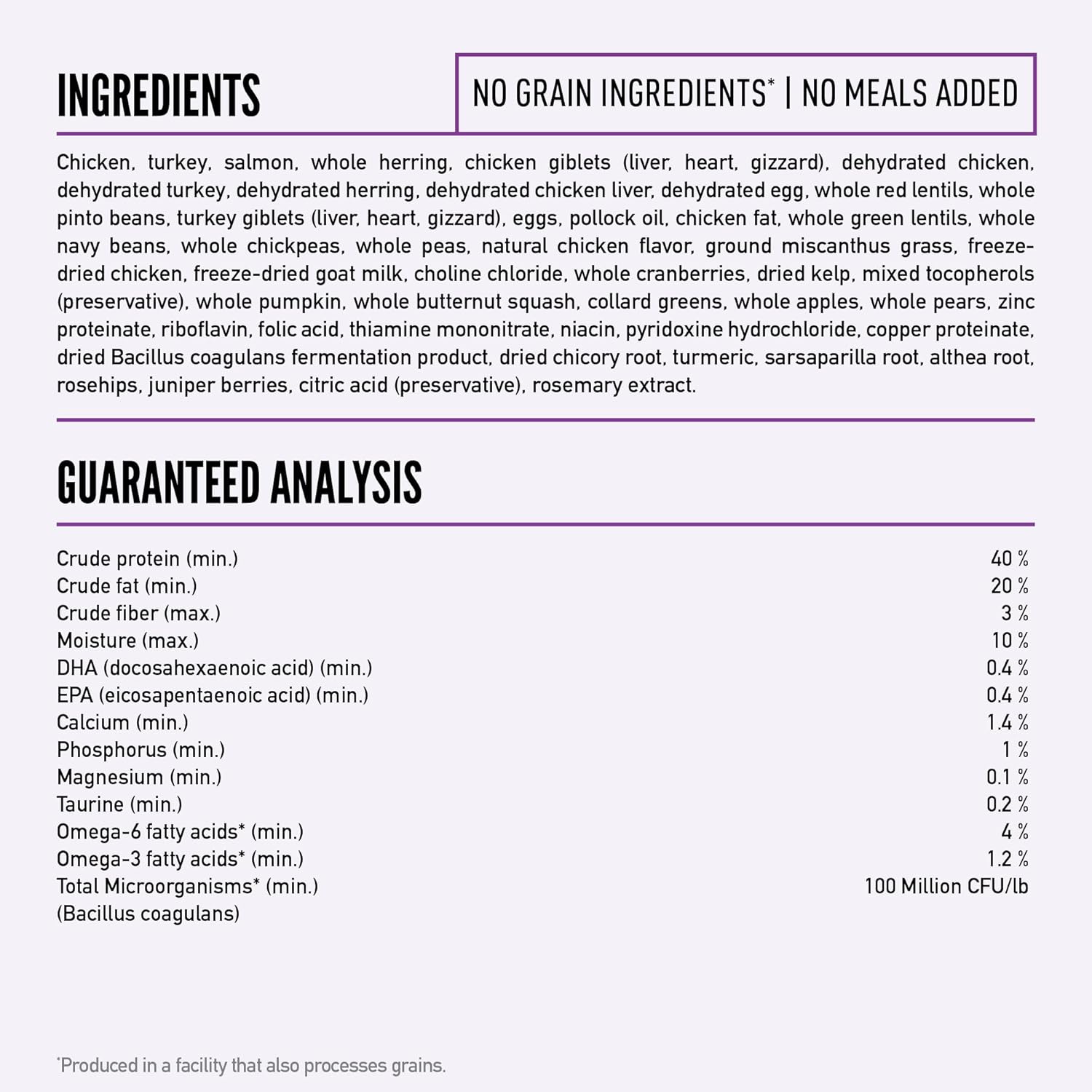 Treat your cat to nutritious and delicious ORIJEN TUNDRA Freeze Dried Cat Treats. These grain free* cat treats are freeze dried to lock in their nutrients and the rich, delicious goodness for a pure and tasty treat your cat will love. Packed with animal protein, this ORIJEN cat treat recipe is made with 99 percent** quality animal ingredients, including nourishing duck, whole mackerel, venison, wild boar, lamb liver and goat. WholePrey ingredients in these ORIJEN cat treats include the most nutrient-dense, succulent parts of the prey to deliver the nutrition cats need. At just one calorie each, these high protein cat treats are great for training or rewarding your cat with a treat that's loaded with protein and amazing taste. NOURISH AS NATURE INTENDED. *No added grain ingredients. Produced in a facility that also processes grains. **Approximate and derived from the unprocessed state of the ingredients