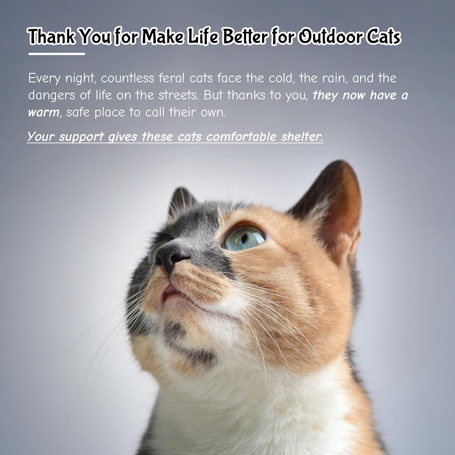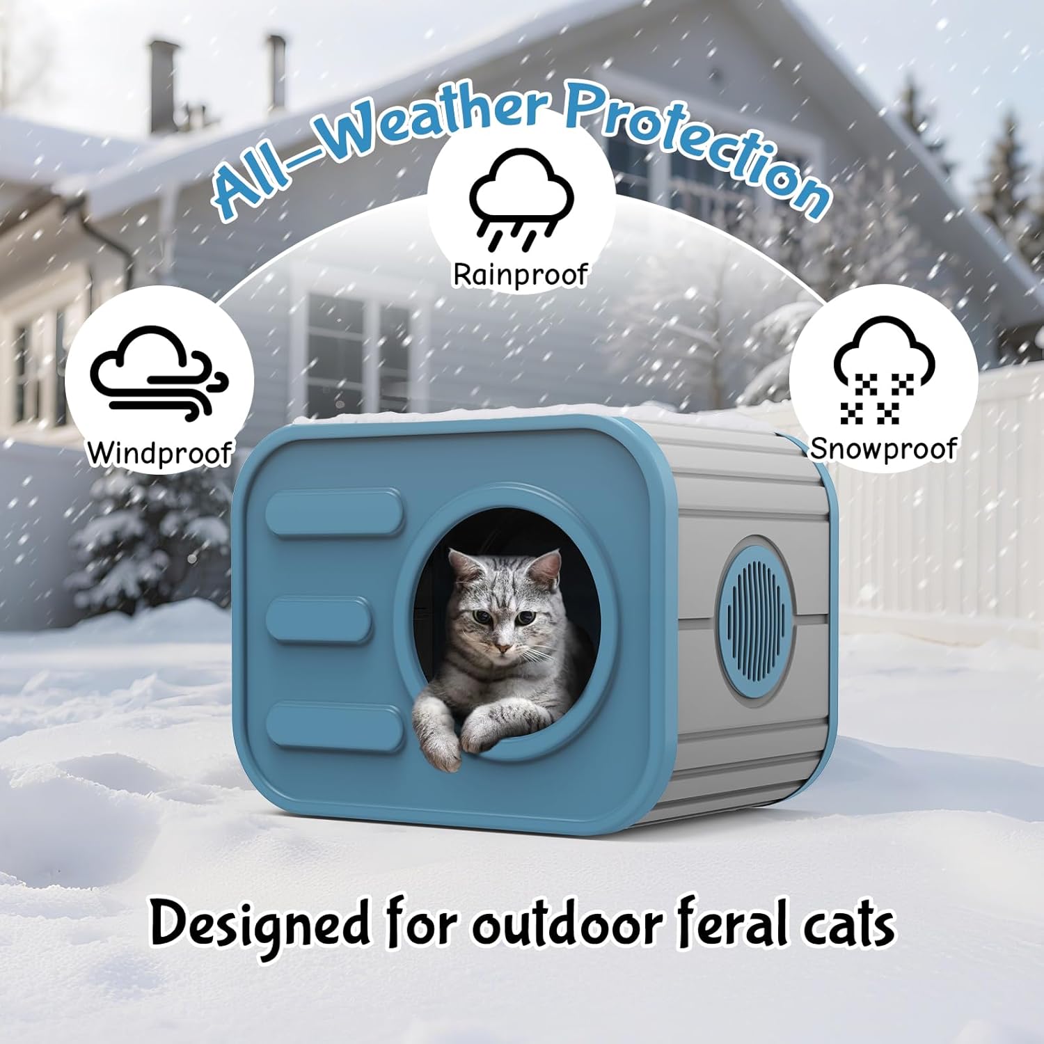 About this item Dual Ventilation Design: Two airflow windows prevent stuffiness and reduce pet anxiety, ensuring fresh air circulation even during extended use. Exceptional Water Resistance: Unique curved roof design channels rain away like a slide! Seamless design ensures zero water ingress even in heavy storms – no more soggy beds! All Season Indoor and Outdoor Cat Shelter: Made from high quality resin, this cat house is both waterproof and UV-resistant. Whether in Winter or Summer, it provides your outdoor cats with a cozy shelter. Easy Assembly and Low Maintenance: This outdoor cat house is simple to assemble with clear instructions. The resin surface is easy to clean and maintain, just wipe it with a damp cloth to keep it neat. Versatile Usage: Not just for cats, this cozy house is perfect for small to medium size dogs, rabbits, and other pets. Your furry friend will enjoy a warm and secure space in this durable plastic shelter. › See more product details