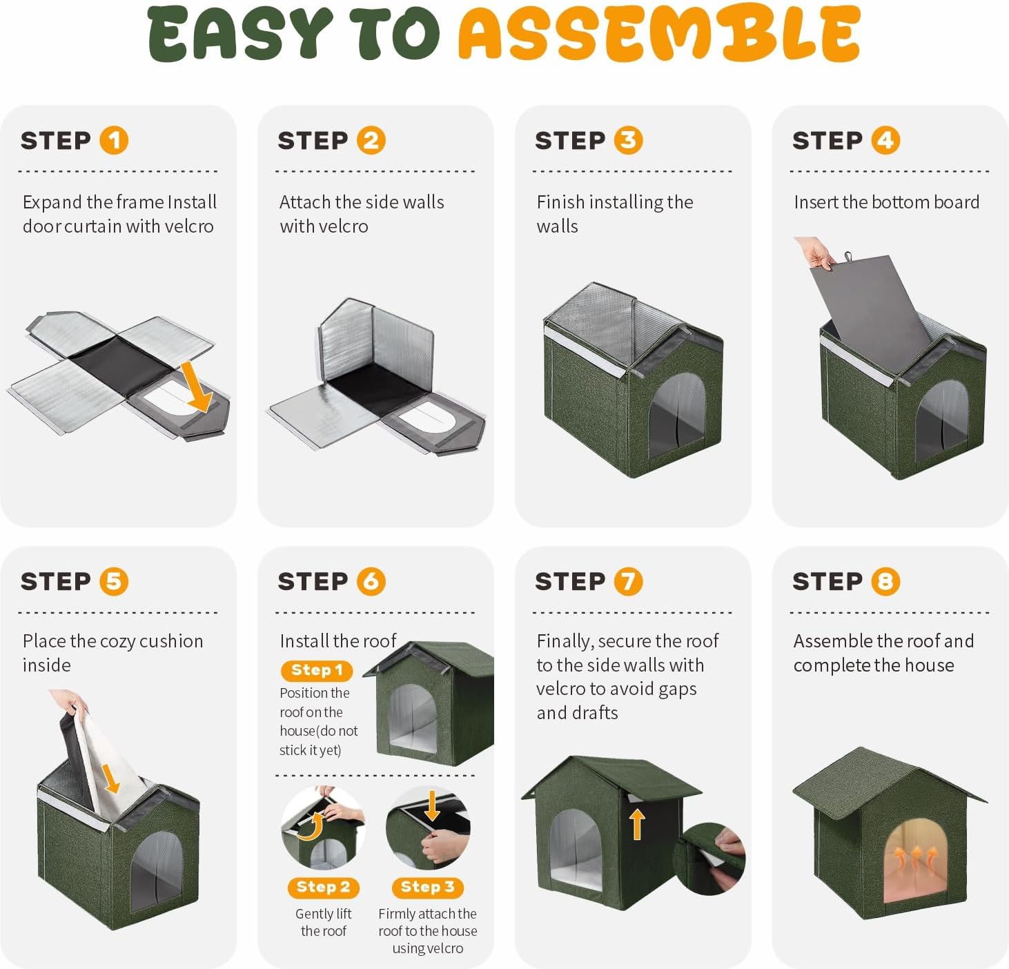 - Included Components: Outdoor Cat House*1, Warm Cushion for Winter*1, Weatherproof Door Curtain*1
