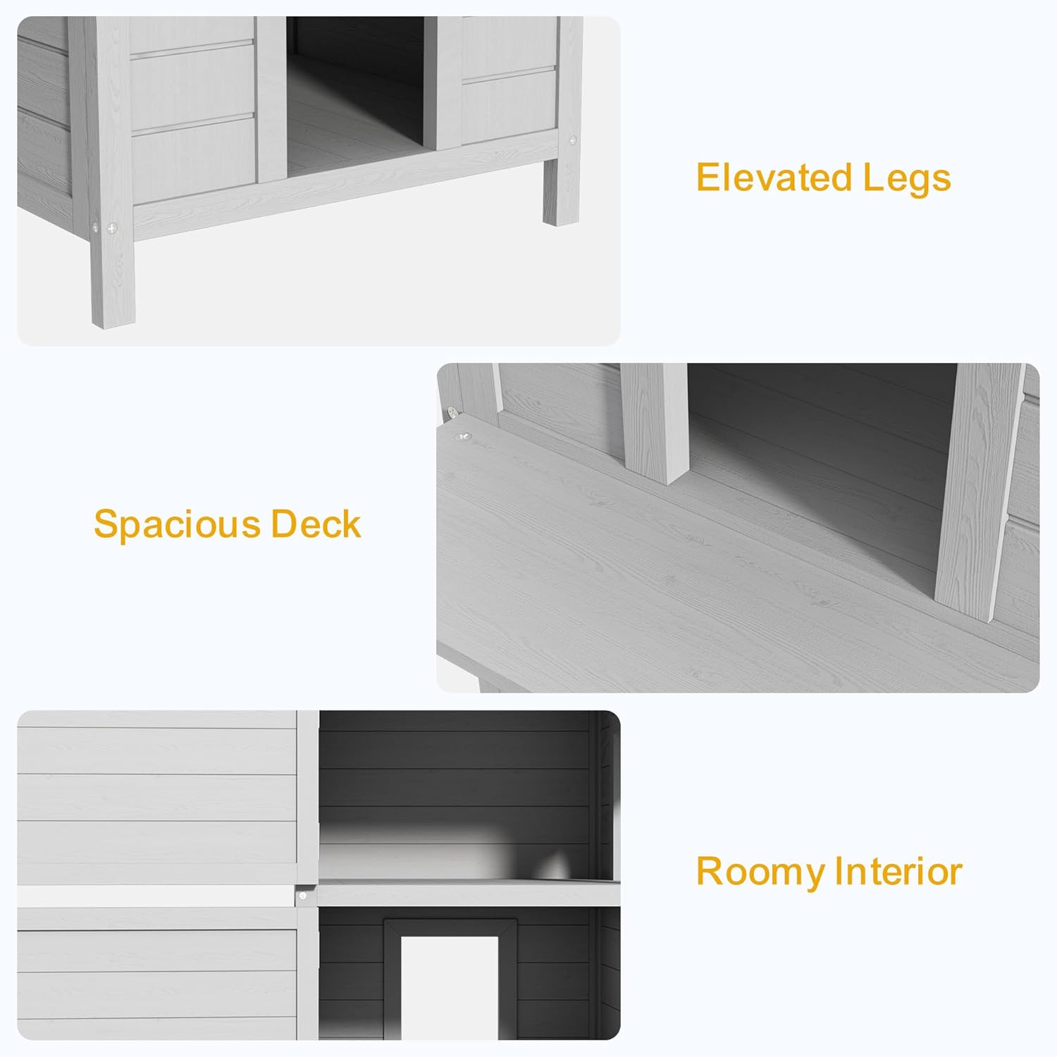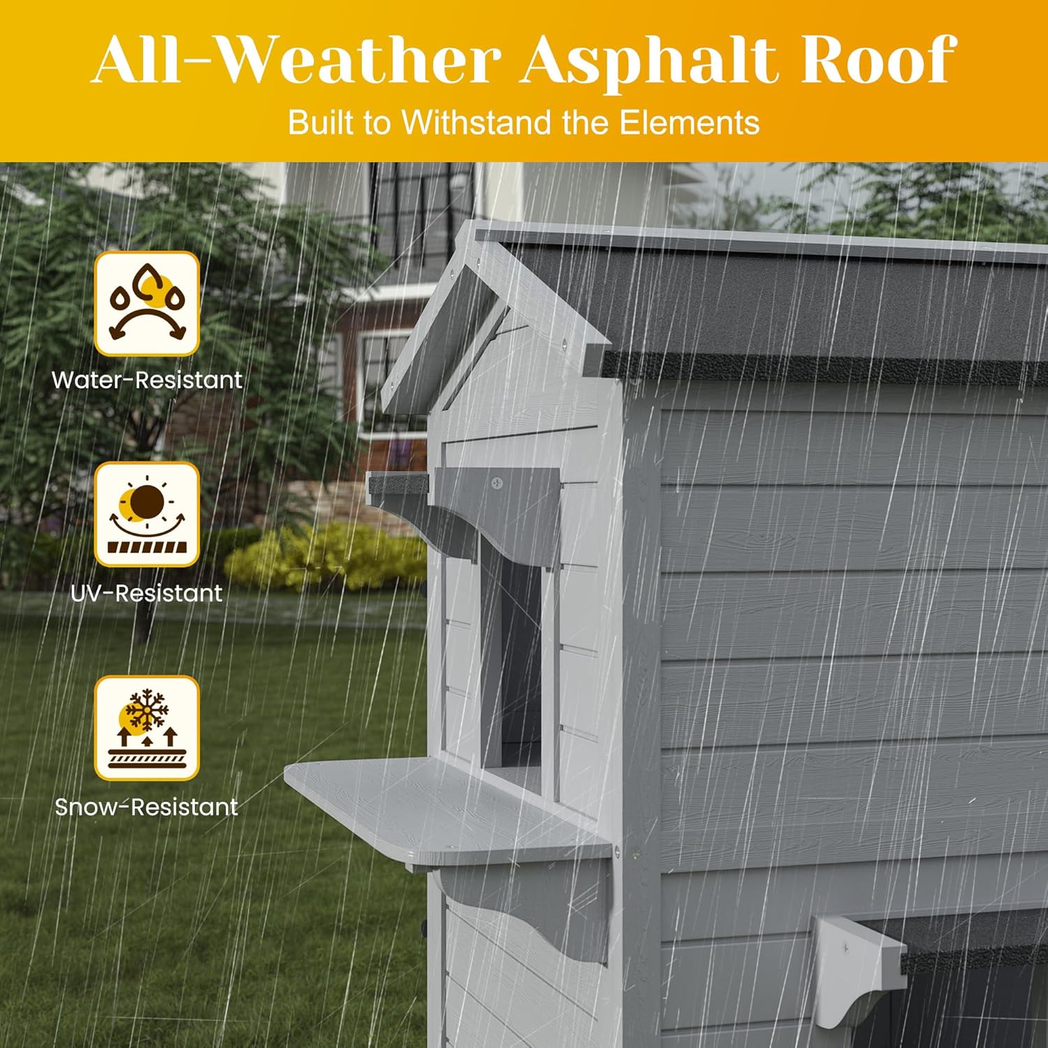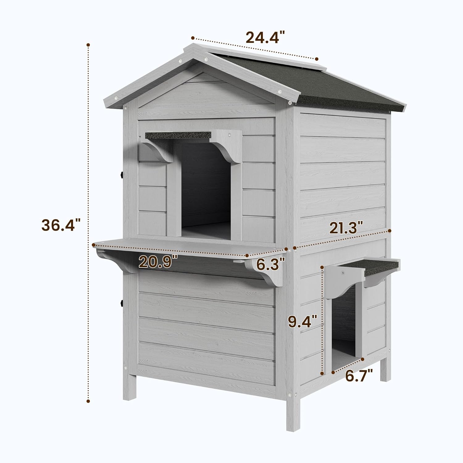 About this item 【Cozy & Secure Shelter - Spacious Outdoor Cat House for 2-6 Cats】 Perfect for stray cats, feral cats, or house pets enjoying fresh air. This large outdoor cat house weatherproof structure features a multi-level layout (29” L x 27” W x 36.4” H), comfortably accommodating 1–3 adult cats. 【Built for the Outdoors – Durable, Weatherproof, and Safe】 Crafted from premium solid fir wood, this wooden cat house resists cracking and warping in all climates. The enclosed asphalt roof offers waterproof, weather-resistant protection – perfect for use as a feral cat shelter, outdoor cat condo, or cat house insulated against heat and cold. A reliable stray cat shelter for year-round outdoor use. 【Better Ventilation, Easy Cleaning】 Designed with an open front entrance for air circulation and a rear lockable panel for effortless access. Whether used as a outdoor cat enclosure, or chicken coop, cleaning and feeding is quick and hassle-free. Great for cat lovers, rescues, or anyone caring for outdoor animals. 【Multi-Pet Friendly – Not Just for Cats】 More than just an outdoor cat cando, this house doubles as a duck house, or even a chicken coop, offering comfort and safety all year round. Perfect for multi-pet households, rural homes, or backyard catio outdoor cat enclosure setups. 【Easy to Assemble, Perfect as a Gift】 With pre-drilled holes and clear instructions, assembly is straightforward—no need for complicated tools. The stylish and functional design makes this outdoor cat house a great gift for cat owners, rescue volunteers, or anyone looking to create a safe haven for stray or feral cats. › See more product details