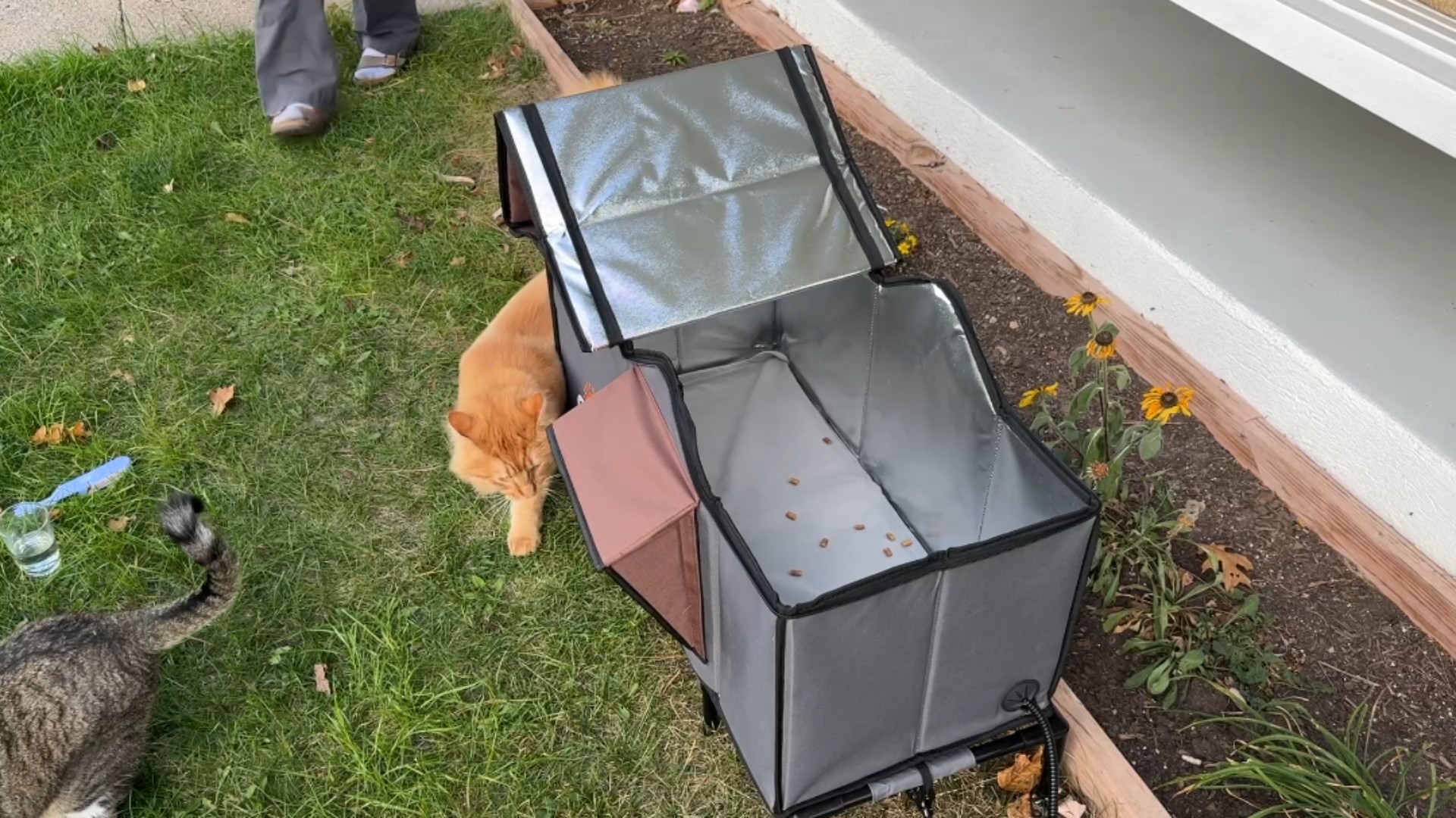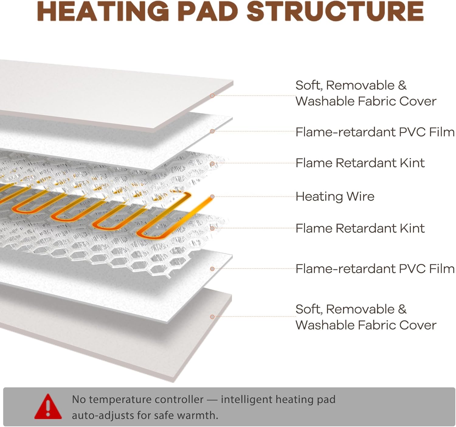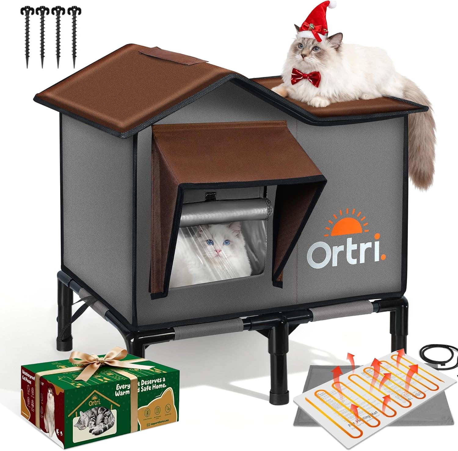 About this item Heated Cat House for Outside: The heated outdoor cat house weatherproof features a 600D waterproof Oxford fabric surface that’s scratch- and wear-resistant. Its heated cat houses for outdoor cats structure allows you to place this insulated cat house outdoor winter anywhere, keeping your cat warm, cozy, and well-protected in cold weather Cat Shelter Outdoor Weatherproof: The outdoor heated cat house weatherproof is designed with an elevated base that's moisture-proof, providing cats a dry and cozy space even on rainy days. We also include floor plugs for added reinforcement, making the cat shelters for outside winter insulated waterproof more sturdy, stable, and less likely to be blown away by the wind Outdoor Cat House Heated: The cat house with heat pad features rapid warming thanks to a new double-layer spiral heating wire that distributes heat evenly and heats up within 1 minute of being turned on. The outdoor cat warmer also comes with built-in power failure protection and a temperature control function for added safety Easy Assembly and Portability: The outdoor heated cat bed sets up in minutes with zero tools required. The outside cat houses for feral cats weatherproof lightweight design makes it easy to move and reposition, whether indoors, on the porch, or in the garage Large Heated Cat House for Outside: The heated cat house for multiple cats offers plenty of space for cats of all sizes to stretch out, turn around, and relax in comfort. The outdoor cat house for winter features a soft, plush interior lining that adds an extra layer of coziness, making it your cat’s favorite sleeping spot Friendly Reminder: The included heating pad should not be used outdoors on its own (as stated in the instruction manual). It can only be safely used outdoors when combined with our cat house, which is specifically designed for outdoor environments. Please make sure to use the heating pad together with the cat house. › See more product details