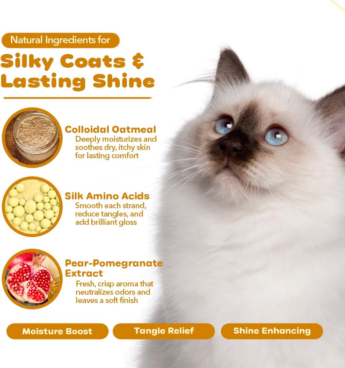 - Directions: After shampooing, thoroughly rinse out all soap, then apply a generous amount of conditioner evenly from neck to tail, gently massaging into the coat and down to the skin; let sit for 2–3 minutes to allow deep penetration, then rinse thoroughly with warm water until the water runs clear and no residue remains.