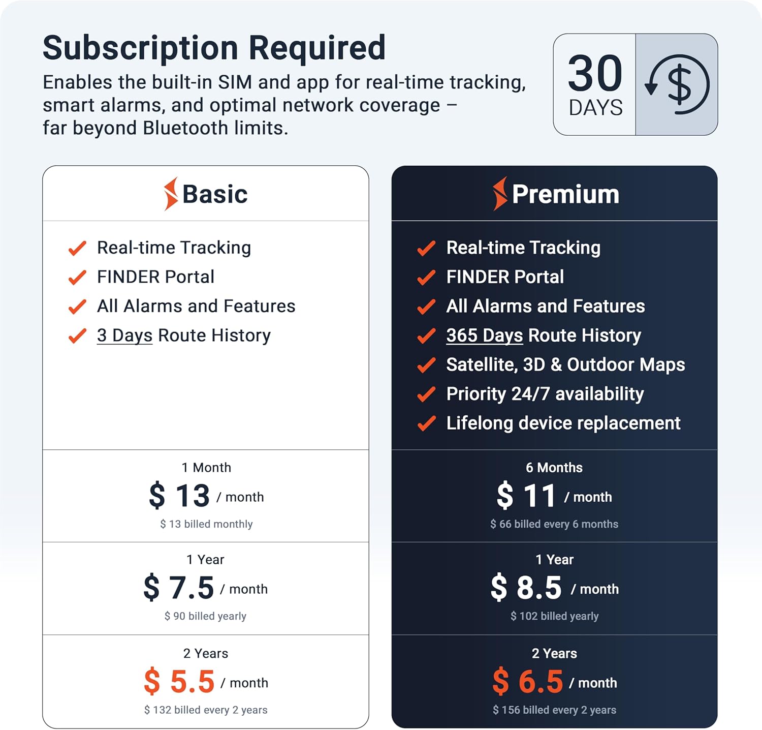 About this item REAL-TIME TRACKING ANYWHERE, ANYTIME—Monitor your pet's live location with the PAJ GPS Tracker for Dogs. This advanced device offers long-range tracking with precision via the app for Android and iOS, ensuring your furry friend's whereabouts are always just a tap away. Designed to fit dog sizes from 8.8 lbs and above — even on adventures far from home. SURVEILLANCE & RUNAWAY ALERTS — Set a virtual fence using the PAJ GPS dog tracker to define a secure zone for your pet. If they leave this area, you'll receive an instant notification on your smartphone. This smart feature keeps you informed and ready to respond quickly, whether you're at home or on the go. COMPACT & WEATHERPROOF DESIGN — Weighing only 48 grams, this compact device attaches securely to your dog’s collar with a durable Velcro strap. Designed for outdoor adventures, the PAJ GPS Tracker is IP67-rated waterproof—perfect for dogs who enjoy swimming or rainy-day play. Built to withstand any season, it’s ideal for active pets in all weather conditions. WITH LONG-LASTING BATTERY PERFORMANCE — Track your dog daily with the PAJ GPS Tracker’s long-lasting battery. In power-saving mode, it provides up to 10 days of monitoring. Expect 4–6 days with mixed use, and 1–2 days with continuous 24/7 tracking—ensuring your pet stays monitored with minimal downtime and reliable performance. FLEXIBLE SUBSCRIPTION PLANS — Enjoy flexible and affordable service plans with the PAJ GPS Tracker. Choose between Basic and Premium options, with low monthly fees. The built-in SIM card ensures seamless, reliable connectivity, while 24/7 multilingual support lets you track your pet confidently—whether you're at home or traveling. › See more product details