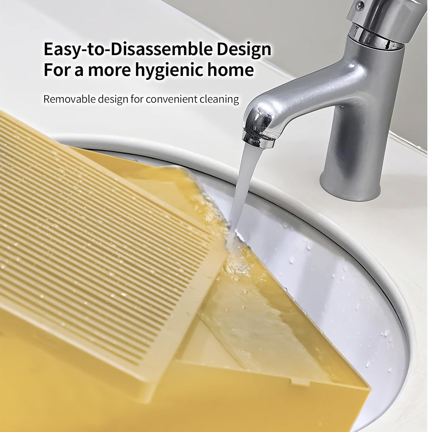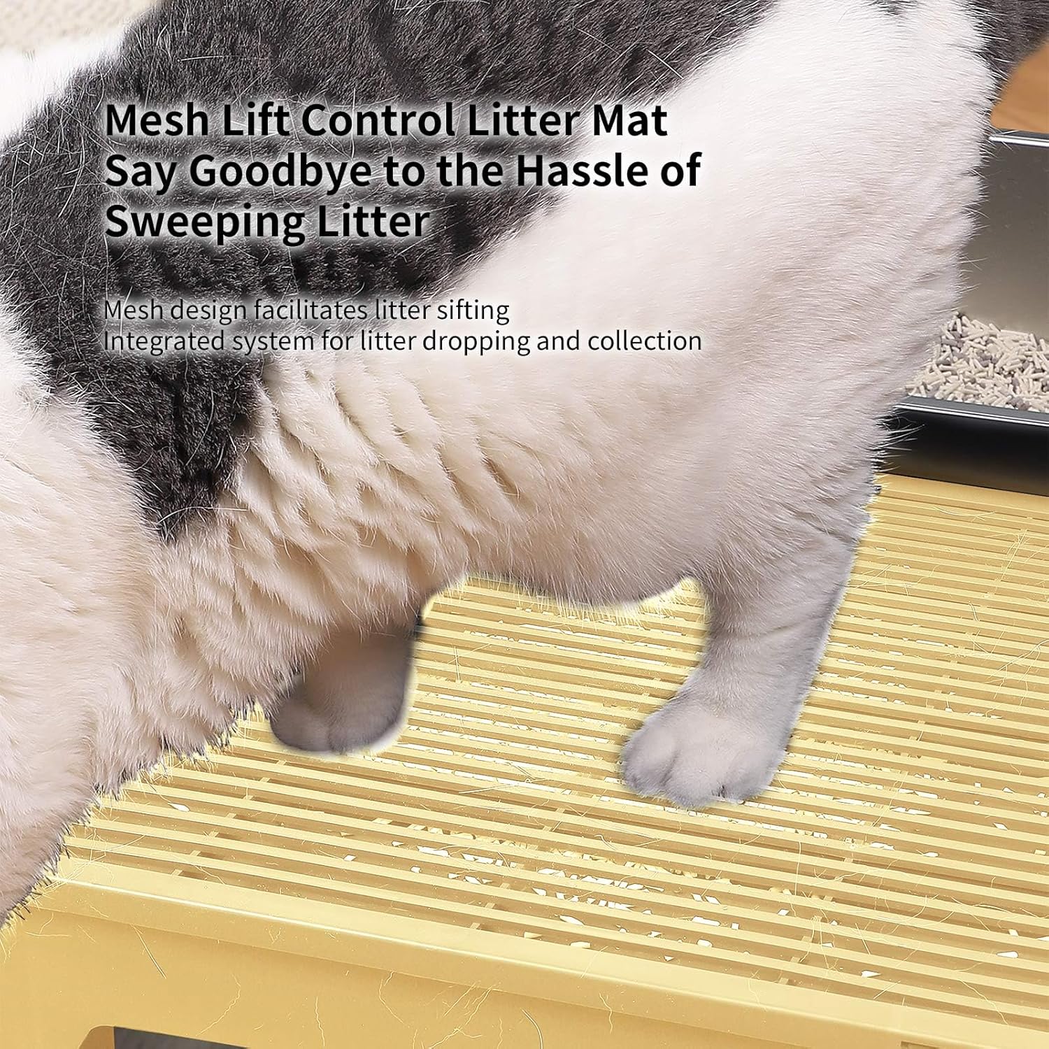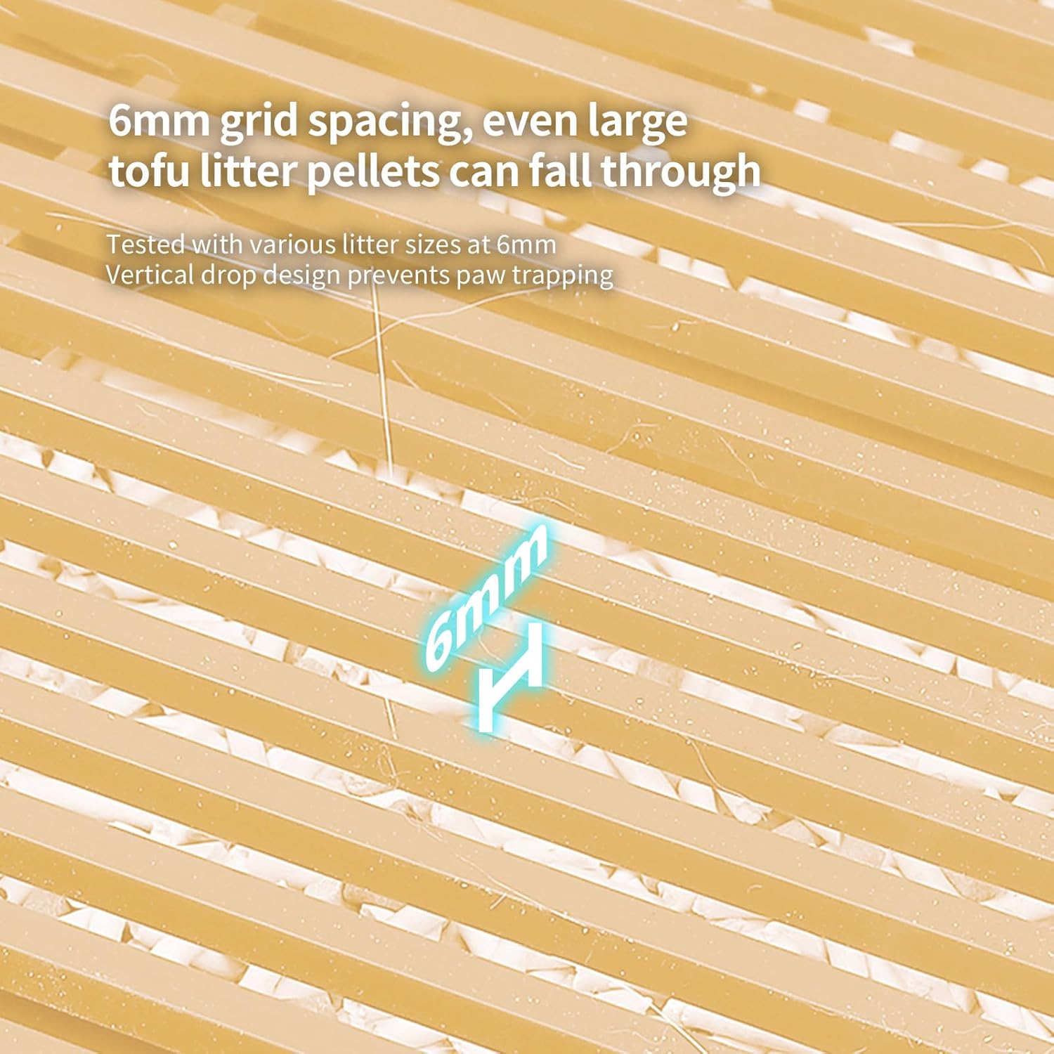 About this item Efficient Litter Control: Our grid - style cat litter mat features a 0.24 in grid design. It allows various sizes of cat litter, even large tofu - shaped particles, to fall through easily, effectively preventing cats from tracking litter around the house. Dual - Height Adaptability: Featuring two adjustable height options (3.54in for low - profile litter boxes and 6.3in for taller ones), this mat effortlessly accommodates a diverse array of cat litter boxes. Whether it's a compact box suitable for kittens, a larger, high - sided one for adult cats, or various taller automatic litter boxes, it's the perfect fit. Joint - Friendly Design: Ideal for cats of all ages, especially senior felines. The mat offers a stable and cushioned surface that eases the strain on their joints as they step in and out of the litter box, promoting healthy movement. Durable and Safe Material: Made from high - quality materials, this mat is sturdy and durable. It also has anti - slip leg design and horizontal snap - on installation to ensure stability and prevent displacement or falling. Effortless Cleaning: Designed with convenience in mind, it's detachable for easy cleaning. Simply rinse it under the faucet to keep it fresh and hygienic. › See more product details