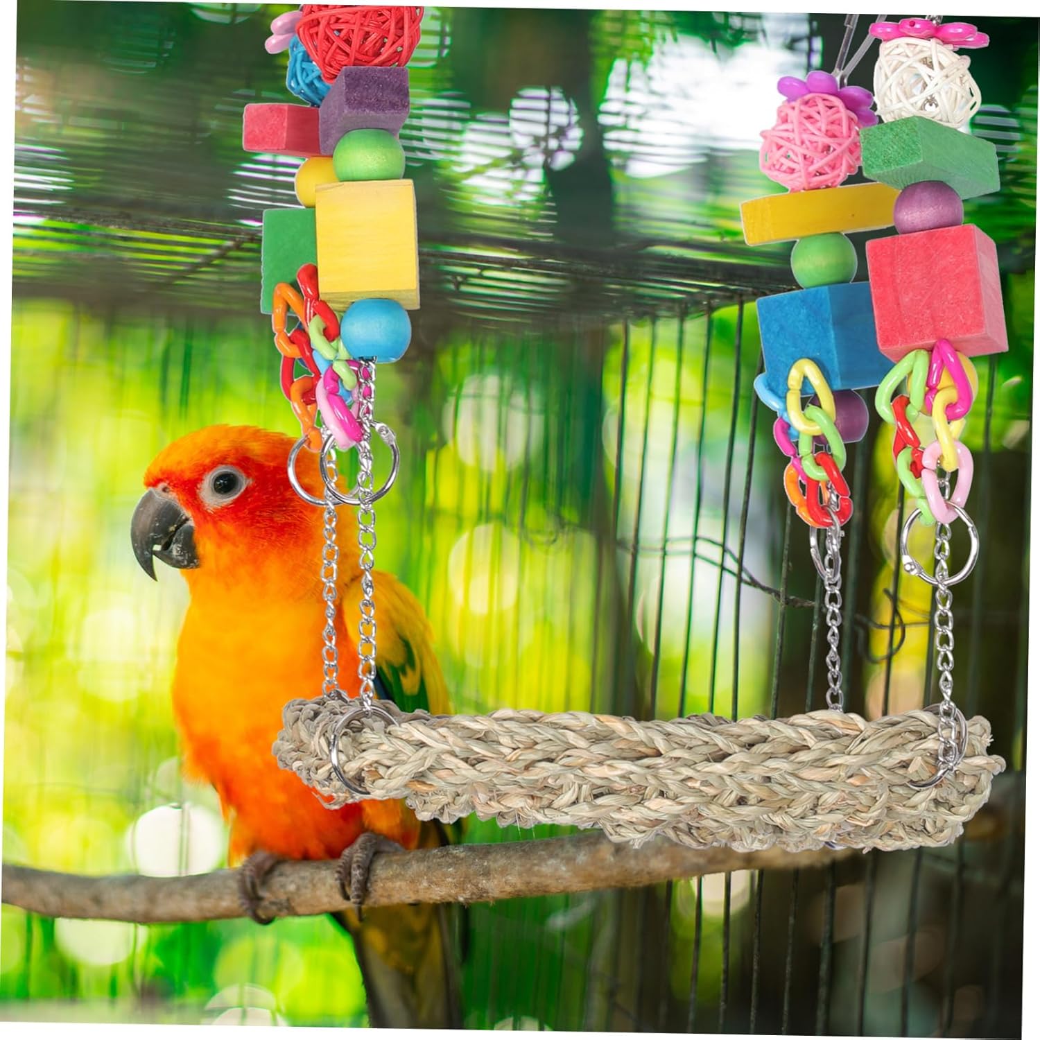 Package List 1 x Swing Features -Size:26.00X18.00X18.00cm/10.22X7.07X7.07in Foraging -Material:Straw, wood Parakeet Hanging Swing -Note: The colored accessories part is in random color Swing Plaything. -Color:Multi Swing - The Swing is your pet to rest or exercise, eat food Parrot Swing. - Suitable for small pets, parrots and other small and medium-sized birds,providing them with a happy and healthy life Resting Nest. - Helps to boredom and destructive behavior in parrots, keeping them active and engaged Cockatiel . - Parrot swing to kill time and you can also use it to provide a sleeping nest for your birds at the same time Supply. - Not only can it provide pets with a place to rest, but also for pets to chew and grind their teeth Cage .Goods InformationParakeets Swing The for parrots, parakeets, cockatiel, etc.Parakeet Bed Your pet can play with them without any concerns.Household Hammock Provides your little an elevated place to swing and play. Supply Designed to let your 's feet have rest, while also offer exercise opportunities for your birds to keep