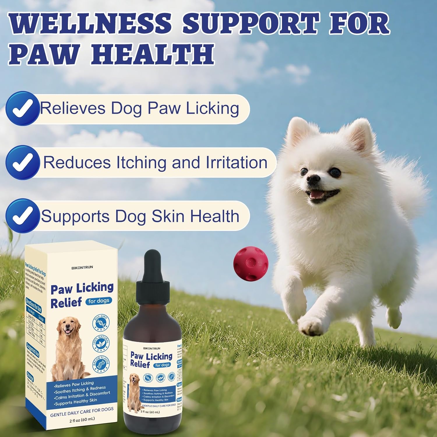 About this item Soothe Persistent Paw Licking – Is your dog constantly licking, biting, or scratching at their paws? This behavior is often a sign of discomfort caused by dryness, allergies, or skin irritation. Our paw licking relief for dogs paw soothing formula is specially crafted to calm sensitive skin, reduce inflammation, and provide relief. Keep Your Dog Comfortable – This relieve licking paw care supplement is specially formulated to address excessive paw licking caused by allergies, dryness, or irritation. Infused with natural herbal ingredients, it works to gently calm inflamed skin, ease itching, and reduce redness. By promoting paw recovery, it helps your furry friend stay active and comfortable. Gentle Herbal Support for Healthy Paws – This dog paw licking relief supplement is a potent plant-based liquid supplement designed to target licking and irritation caused by skin sensitivity or environment. Featuring a blend of soothing botanicals like chamomile, calendula, licorice root, and turmeric, this natural remedy helps calm inflammation, support skin repair, and restore moisture balance. VET Recommended Formula – Whether your dog’s constant paw licking is caused by seasonal allergens, dry or irritated skin, this soothing dog paw licking tincture offers reliable internal support. Formulated to calm inflammation and promote skin balance from within, it pairs perfectly with daily paw care routines to help reduce excessive licking and restore your dog’s comfort and peace of mind. Natural & Safe for Daily Use – This paw licking relief supplement is crafted with clean, herbal ingredients — free from alcohol, artificial additives, colors, or preservatives — making it a gentle and safe choice for dogs of all breeds, sizes, and ages. The natural bacon flavor makes it highly palatable, so it can be given directly or mixed into your dog’s meals or treats. › See more product details