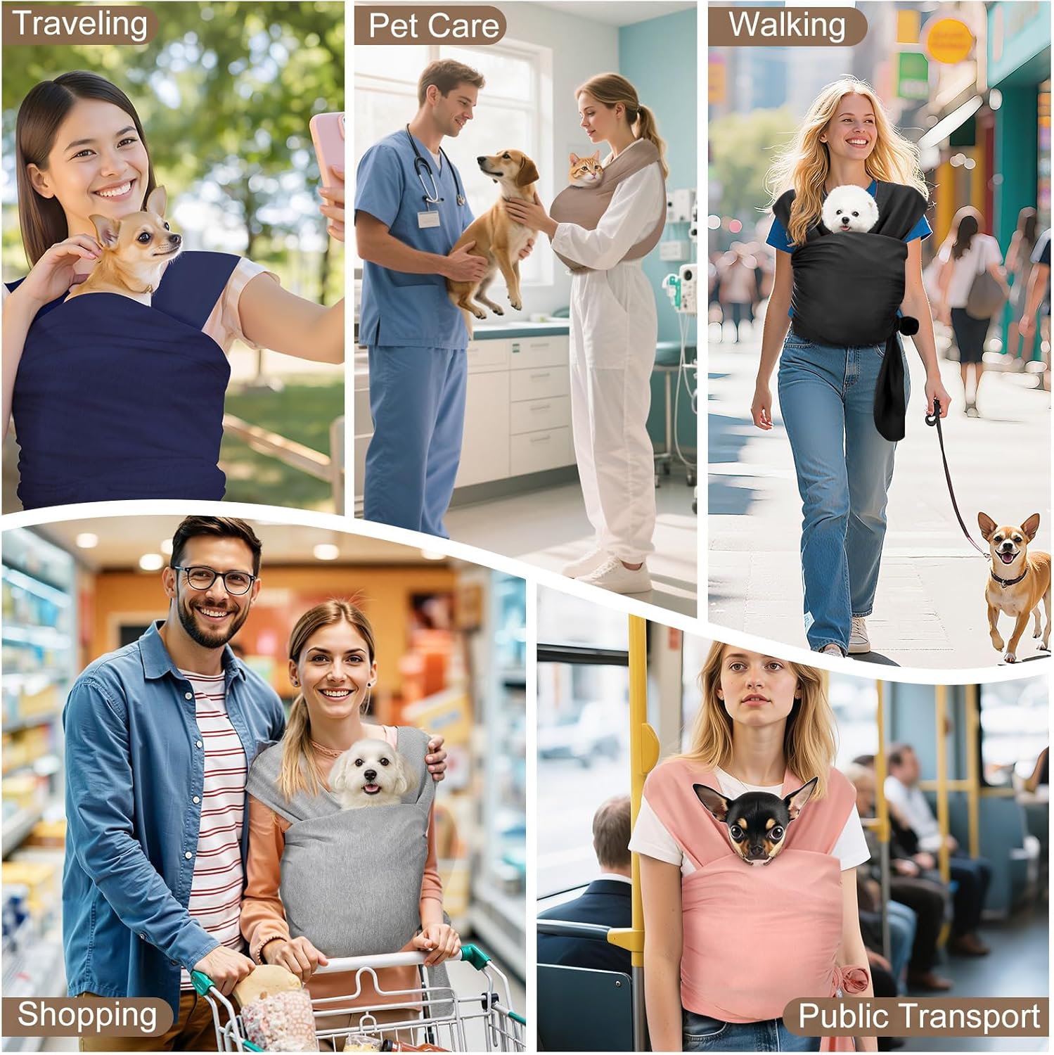 About this item Free Your Hands: The pet carrier is suitable for cats and small dogs, with it you have the freedom to multitask with ease and keep your pets safe, whether you are running errands, working or enjoying your time out for a walk. Reduce Pets Anxiety: The front facing puppy papoose promotes bonding with your pet and allows you to hold them close to your chest, providing a sense of security and effectively reducing your pet's anxiety and stress, whether your pet is an elderly pet, an injured pet, a blind pet, or a pet recovering from surgery. Comfortable Carrying: The small kitten carrier features front-facing design that evenly distributes the pet's weight across your upper body, thus reducing the pressure on your back and shoulders, relieving waist, shoulder and back pain, and easing the burden on you and your furry friend while on the go. Soft and Cozy Wrapping: Puppy carrying sling is made of soft cotton fabric, comfortable and skin-friendly, giving a warm hug to your furry pet. Support machine washable and easy to clean.. Fits Various Situations: With perfect fit design, the puppy sling carrier allows you to carry your little pet on trips, walks, hikes, phone calls, trips to the pet hospital, cleaning, etc., keep interacting with your furry friend anytime and anywhere. › See more product details