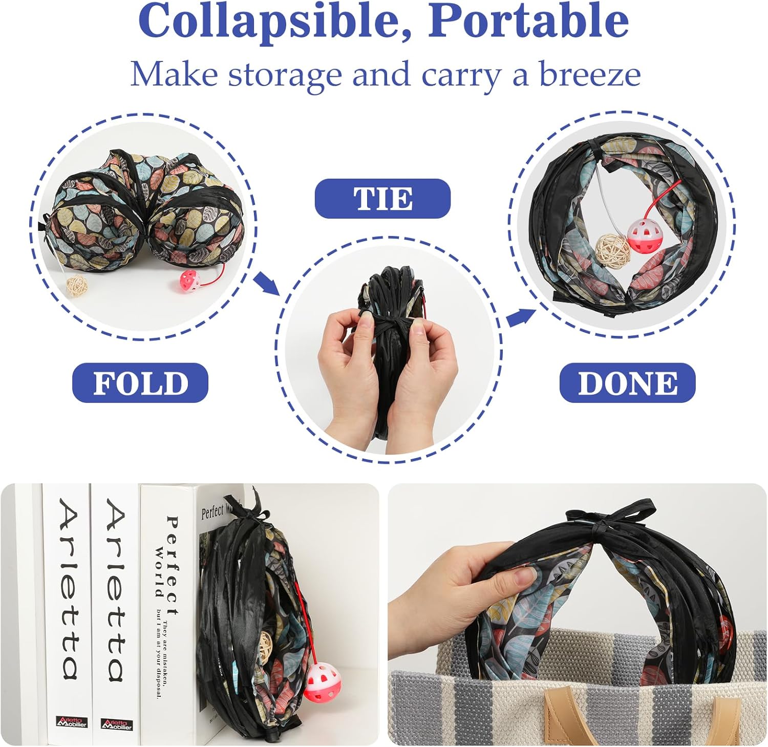 About this item Designed for Small Pets: The dimension of small animals tunnel: total length: 60cm/23.6“, entrance diameter: 18cm/7”, peep hole diameter: 10cm/3.9”. Spacious play tunnel allows them to enter and pass through with ease, perfect for hamsters, guinea pigs, rabbits, ferrets, hedgehogs, chinchillas, kittens and other small pets. Keep Little Pets Active: A secret place for your animals to hide, sleep and play. Nibbling on the sturdy rattan balls, or shaking the hanging bell on the side door, or poking their heads through the peephole to investigate, your little cuties will always find the desired entertainment in the pet toy tube to relieve boredom and anxiety. Sturdy and Stay Shape: The surface of the guinea pig tube toy is made of 190T polyester fabric, which is tear-resistant and resistant to paw scratches, and easy to wipe. There is steel wire into tube to support frame that helps keep the tube shape, so it won't collapse easily even if the guinea pigs run and roll around in it or even stand on it. Foldable and Portable: Easy to fold, just grab the sides and press towards the center and tie with string, you can fully complete storage. Folded for easy storage and space saving, perfect for traveling or outdoor use, you can always take the hamster pipe tunnel out to play tunnel games wherever you are. Like Being in Nature: Colorful leaf and flower patterns are scattered on the surface of the small pet pipe, making the little pets feel as if they are in real nature, giving them a sense of habitat security. This is a perfect gift for your sweet little pets, showing and expressing your full of love. › See more product details