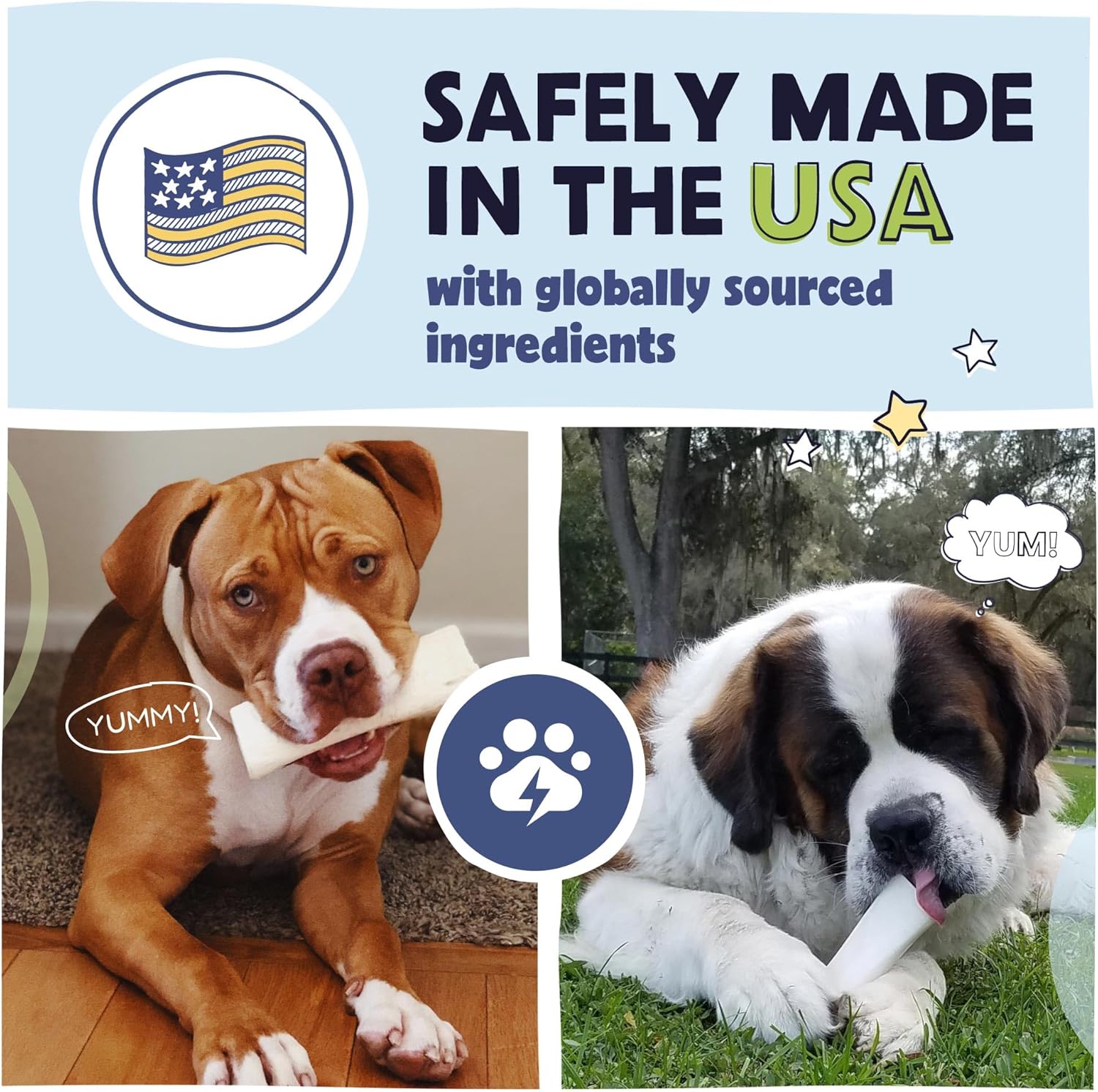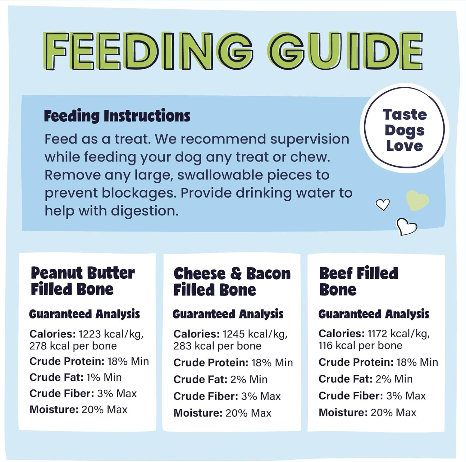 About this item This Variety Pack includes 1 Peanut Butter, 1 Cheese & Bacon, and 1 Beef Filled Bone. Our filled bones for dogs are Made in the USA to ensure the healthiest and safest possible dog chews. Our Midwest processing plant adheres to the strictest of quality assurance standards and sources free range, grass fed cattle. Additionally, our facilities are audited, inspected, and approved by outside 3rd party inspectors. Each white femur bone is approximately 5 to 6 inches long and has been hollowed out to make room for our tasty filling. We take the time to slowly roast our American-made white bones for dogs to lock in the natural meaty and smoked flavor that dogs love. This bone is guaranteed to keep your dog busy! Dog dental care is important! These natural dog dental bone chews help to remove harmful plaque and tartar leading to improvements in overall dental health. Let your dog chew on these clean dental bones and watch his teeth sparkle. For Pet Parents By Pet Parents: All dogs deserve the very best—that’s why as a certified small business Pawstruck only sells wholesome products we proudly feed our own dogs that adhere to the strictest of quality assurance standards Packaging May Vary: There's an exciting new look at Pawstruck! During the transition you may receive either bag design, but you'll ALWAYS receive the same quality products. › See more product details