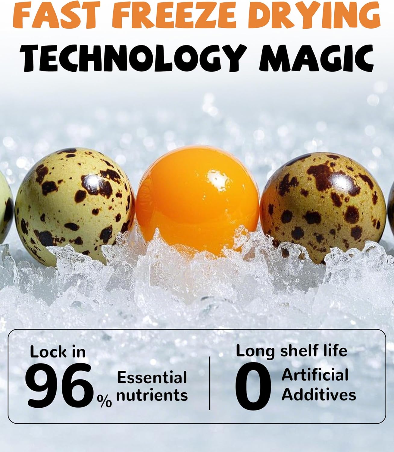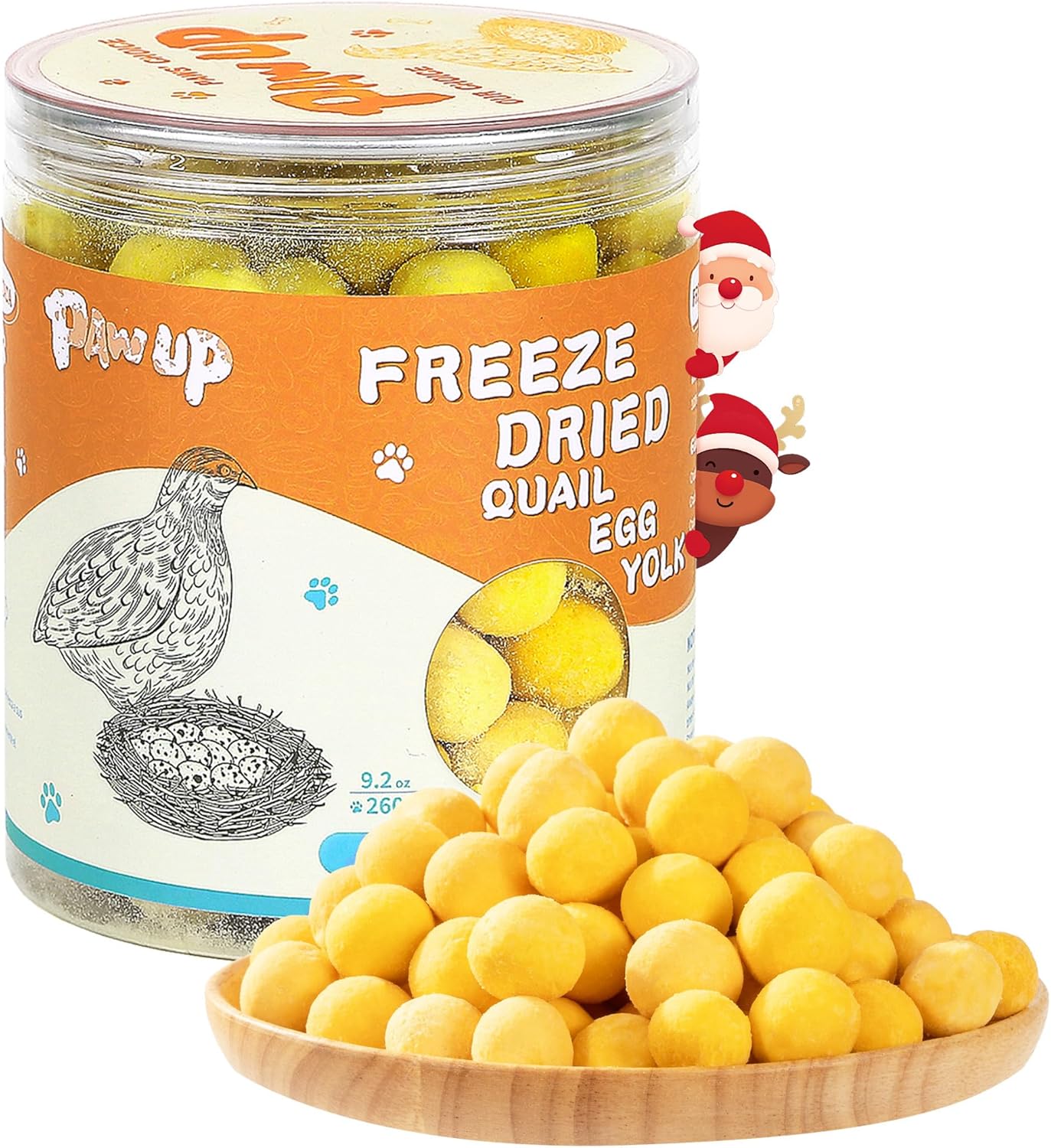 About this item Pure Quail Egg Yolks: PAWUP's freeze-dried pet treats are made with only premium quail egg yolks sourced from free-range quails. These yolks provide a high-quality protein source, giving your pets the essence of quail yolk in every bite Nutrient-Rich: PAWUP Freeze-Dried Quail Egg Yolk Pet Treats use advanced freeze-drying technology to retain up to 96% of the essential nutrients present in fresh quail eggs. Your pets can enjoy a nutrition-rich snack that meets their requirements Natural and Additive-Free: PAWUP's freeze-dried quail egg yolk treats are RAWHIDE-FREE, GRAIN-FREE and GLUTEN-FREE, providing a pure and wholesome snack for your pets. With no artificial additives, these treats allow cats and dogs to enjoy the pure taste of quail egg yolks For All Carnivorous Pets: Perfect for cats, dogs, and all carnivorous companions, our freeze-dried quail egg yolk treats are a top-notch choice. Use them for training sessions, as a tasty snack, or as a flavorful meal topper, catering to pets' dietary preferences Variety of Flavor: Whether given whole, crumbled for added flavor, or rehydrated to enhance the meaty aroma, PAWUP freeze dried treats offer a variety of feeding options. You can also choose different freeze dried treats from PAWUP to supply multiple flavor and comprehensive nutrition to your beloved furry pets › See more product details