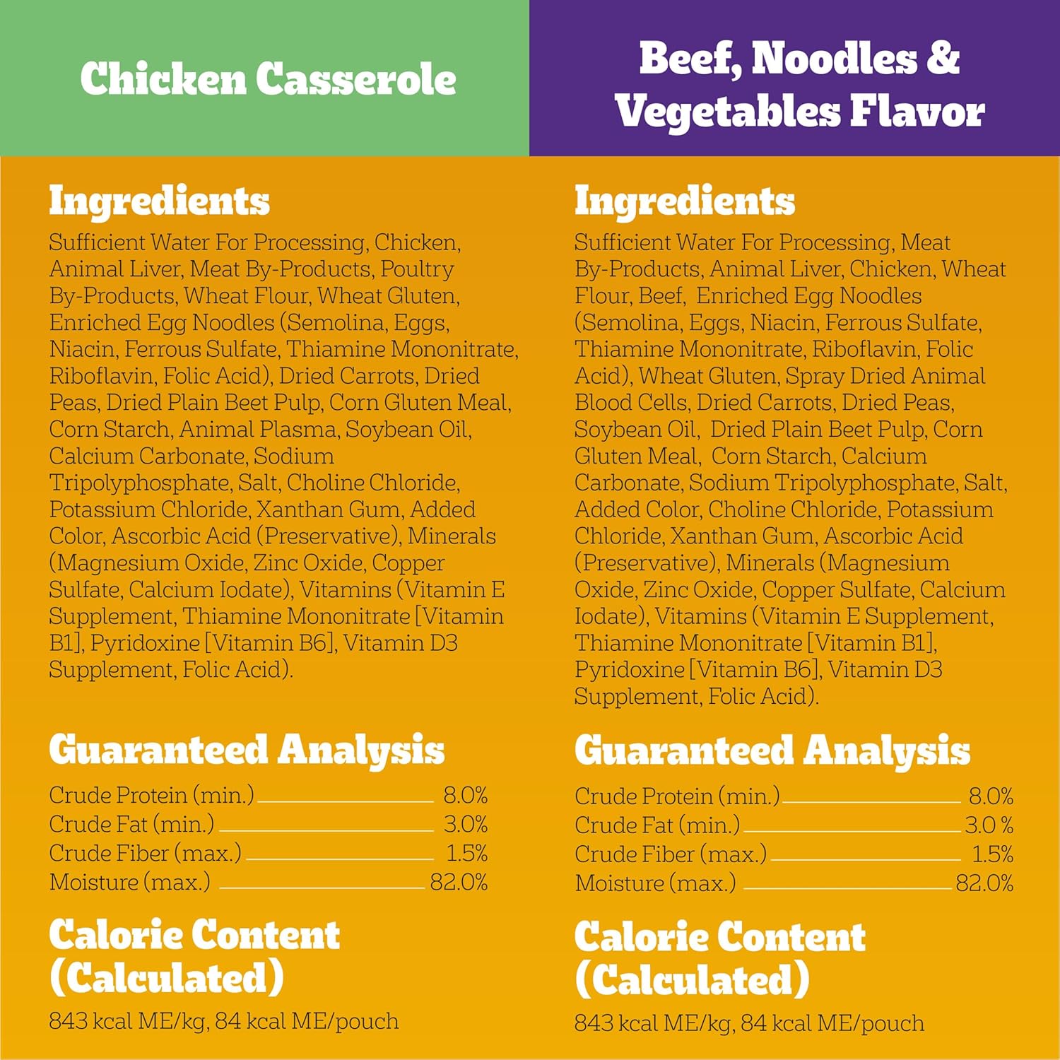 Dogs bring out the good in us. Pedigree brings out the good in them. Express your love for your dog by serving Pedigree Choice Cuts In Gravy Adult Soft Wet Dog Food Variety Pack. These great-tasting wet dog food recipes are 100% complete and balanced food for adult dogs and are made with real beef or real chicken, bringing a filling and familiar flavor to mealtime. Pedigree Choice Cuts In Gravy Adult Soft Wet Dog Food Variety Pack features four delicious options: Filet Mignon Flavor, Chicken Casserole, Grilled Chicken, and Beef, Noodles & Vegetables Flavor so your dog can have favorites to choose from. This versatile soft dog food can be served as a topper, mixed with dry dog food, or enjoyed by itself as a complete meal for adult dogs, bringing your dog a variety of ways to indulge. Crafted with no high fructose corn syrup, artificial flavors, or added sugars although, trace amounts may be present due to potential cross-contact at manufacturing, Pedigree Choice Cuts In Gravy Adult Soft Wet Dog Food Variety Pack shows your dog that you care and want them to have great tasting food.