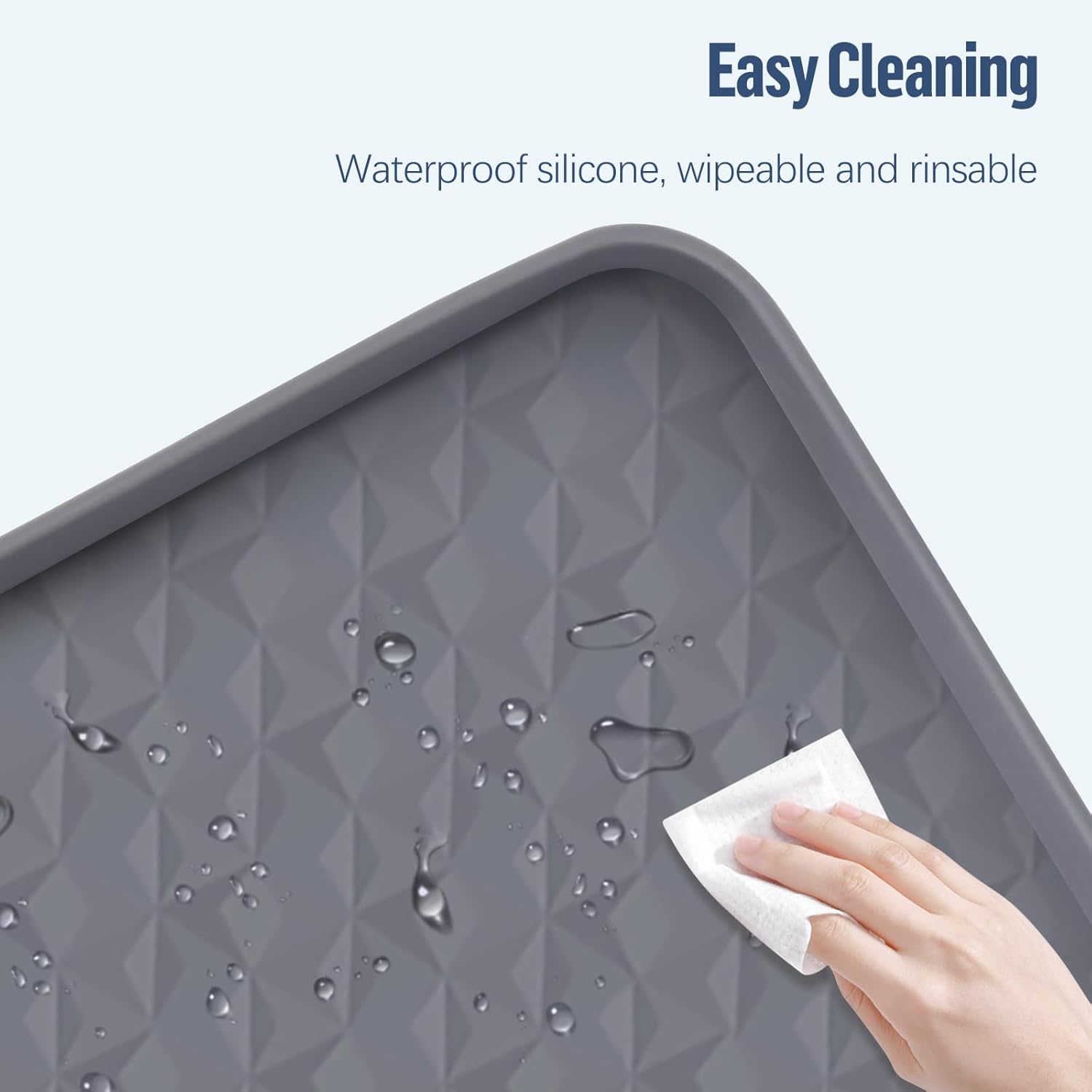 Bartuke Dog Pee Pad Holder: Premium Silicone Mat for Mess-Free Potty Training – Protect Floors, Secure Pee Pads, and Simplify Cleanup Tired of messy leaks, shifting pee pads, and stained floors during potty training? The Bartuke dog pee pad holder is designed to solve these headaches, combining practicality and durability in one essential tool for pet owners. Crafted with inspiration from real-life pet care struggles—watching puppies tear pads or senior dogs miss the mark—this silicone mat acts as a reliable barrier, keeping your home clean and your mind at ease. Why It Stands Out: Superior Leak Protection:This pee pad holder contains spills, urine splatters, and wet pad edges, ensuring no liquid seeps onto hardwood, tiles, or carpets. The flexible silicone material forms a tight seal with floors, making it ideal for homes with puppies, small breeds, or dogs with incontinence. This mat works seamlessly with all pee pads for dogs, including disposable and washable pee pads for dogs. Secure & Non-Slip Design:The silicone mat’s textured surface grips standard pee pads firmly in place, preventing shifting even when energetic puppies scratch or senior dogs step on it. The bottom features a non-slip texture that adheres to most surfaces, so the dog pee pad holder stays put—no more chasing loose pads across the room. Effortless Cleaning: Accidents happen, but cleanup shouldn’t be a chore. Simply wipe the silicone mat with a damp cloth, rinse under water. It dries quickly, ready for the next use—perfect for busy pet parents relying on a puppy pad holder to streamline training. Specifications: Dimensions: 51"x25.6"/130 x 65 cm, Material: Silicone Color: Grey b>How to Use: 1. the silicone mat on a flat surface. 2. Lay your chosen pee pad (disposable or washable pee pads for dogs) flat on the mat, ensuring edges align with the holder. 3. For cleanup: Remove the pad, wipe the mat, and reuse.
