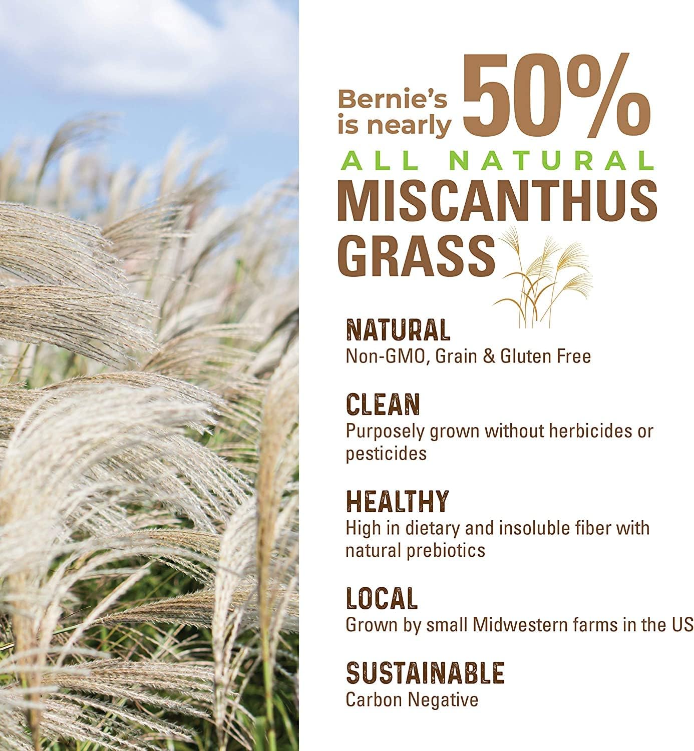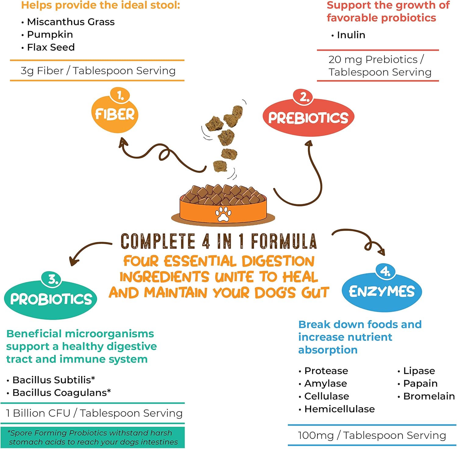 About this item HEALTH STARTS IN THE GUT: High Fiber Grass Bits naturally revitalize your pet's digestive tract to relieve digestive issues including diarrhea, constipation, upset stomach, stalled digestion, bloating and food intolerance; Reduces gas, stool odor, bad breath and firms up poop HELP YOUR DOG FEEL THEIR BEST: Bolster your dog's immune system and overall health; Increase absorption of nutrients and vitamins to help tackle common pet concerns such as allergies, skin, coat, itching, licking, infection, low energy, weight loss, mood, sensitive stomach, and more COMPLETE 4 IN 1 FORMULA: Combines premium Fibers, Prebiotics, Probiotics and Enzymes to supercharge your pet's digestive system. These four building blocks unite to form a high fiber solution that heals and maintains your dog's gut 4 IN 1 FORMULA SAVES TIME AND MONEY: Stop buying separate supplements; save time and money by buying one solution that combines them all; Solid grass bits mix in well with your dog's food or can be served as treat or topper; No more powders stuck at the bottom of the bowl or floating in the air like other brands; Serving size varies based on weight - One bag will last a 50 lb dog a little over a month NATURAL PREMIUM INGREDIENTS: Natural, Grain Free, Gluten Free, Non-GMO and Made in USA; Miscanthus Grass, Pumpkin Powder and Flax Seed Fibers provide the perfect poop; Inulin & Xylooigosaccharides Prebiotics; Bacillus Subtilis and Bacillus Coagulans probiotics support a healthy digestive tract and immune system; Blend of digestive Enzymes break down food and increase nutrient absorption › See more product details