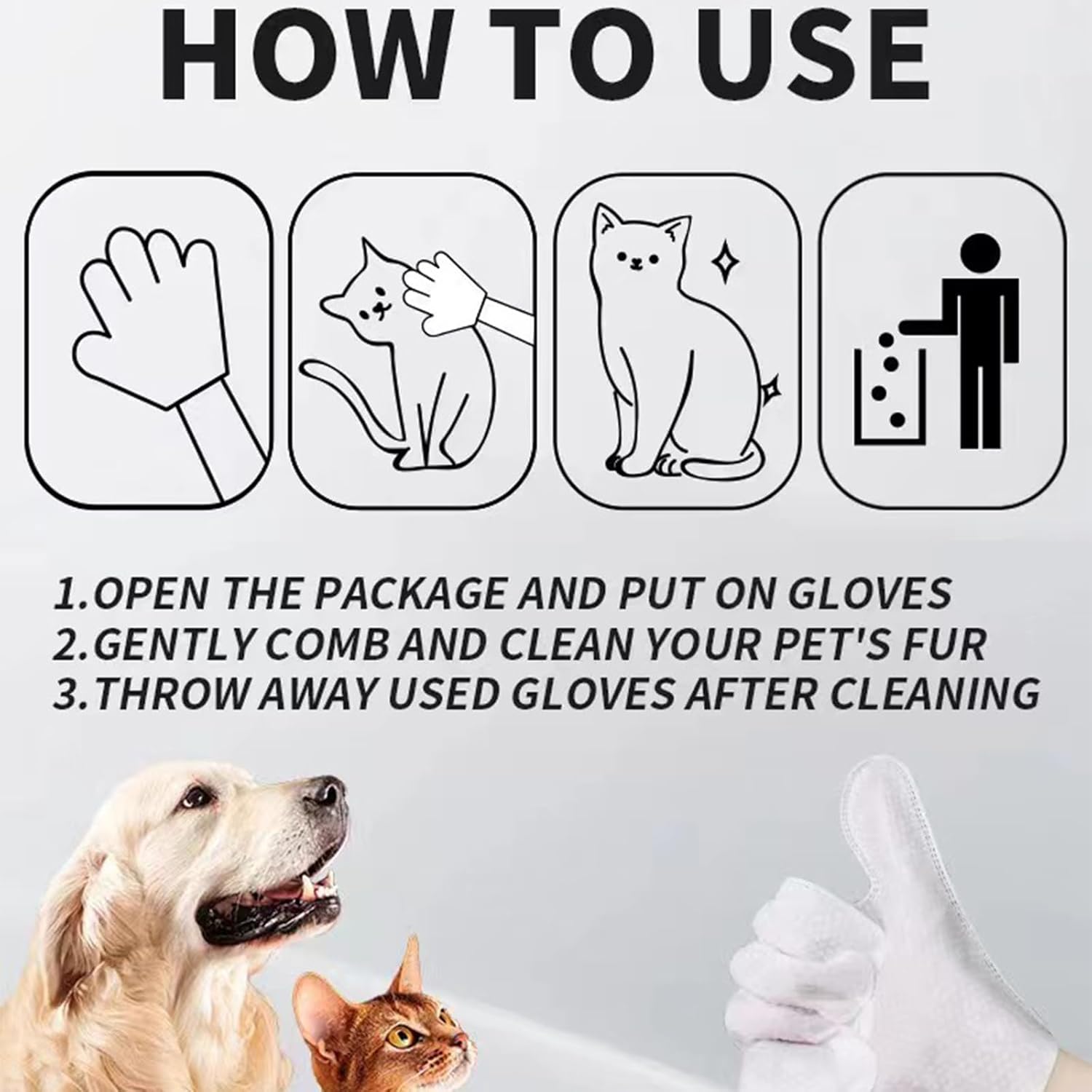 Pet Grooming Glove Wipes Combination,Pet Bathing Wipes for Dogs & Cats, Cleaning & Deodorizing Grooming Gloves, Nourish Fur Glove Wipes for Daily Care and Traveling, Rinse Free