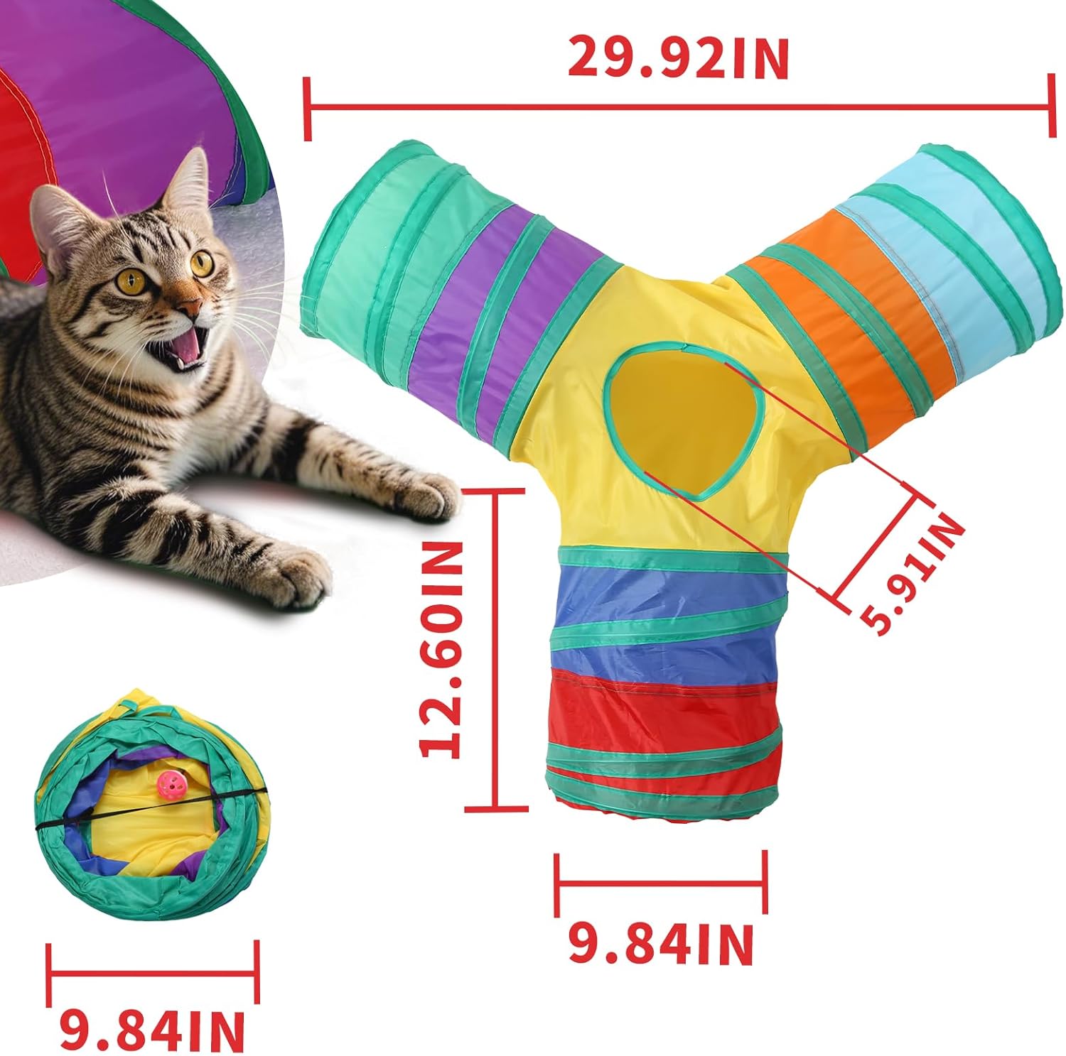 About this item Durable & Tangle-Free Play --- Reinforced steel frame and tear-resistant polyester withstand claws and pounces. Machine-washable fabric ensures hassle-free cleaning for endless fun Adventure-Ready Collapsible Design --- Lightweight tunnel folds flat in seconds—ideal for travel, storage, or spontaneous indoor/outdoor play sessions Multi-Cat Interactive Hub --- 25cm-wide tunnels with peekholes and detachable toys encourage group play. Satisfies chasing instincts while reducing multi-pet boredom Instinct-Stimulating Crinkle Zones --- Built-in crinkle paper triggers natural hunting curiosity. Hide-and-seek friendly layout sharpens agility and mental engagement Safety-First Cat Sanctuary --- Breathable, non-slip structure with rounded edges. Offers stress-relieving hideouts for anxious pets—doubles as bonding space with owners › See more product details