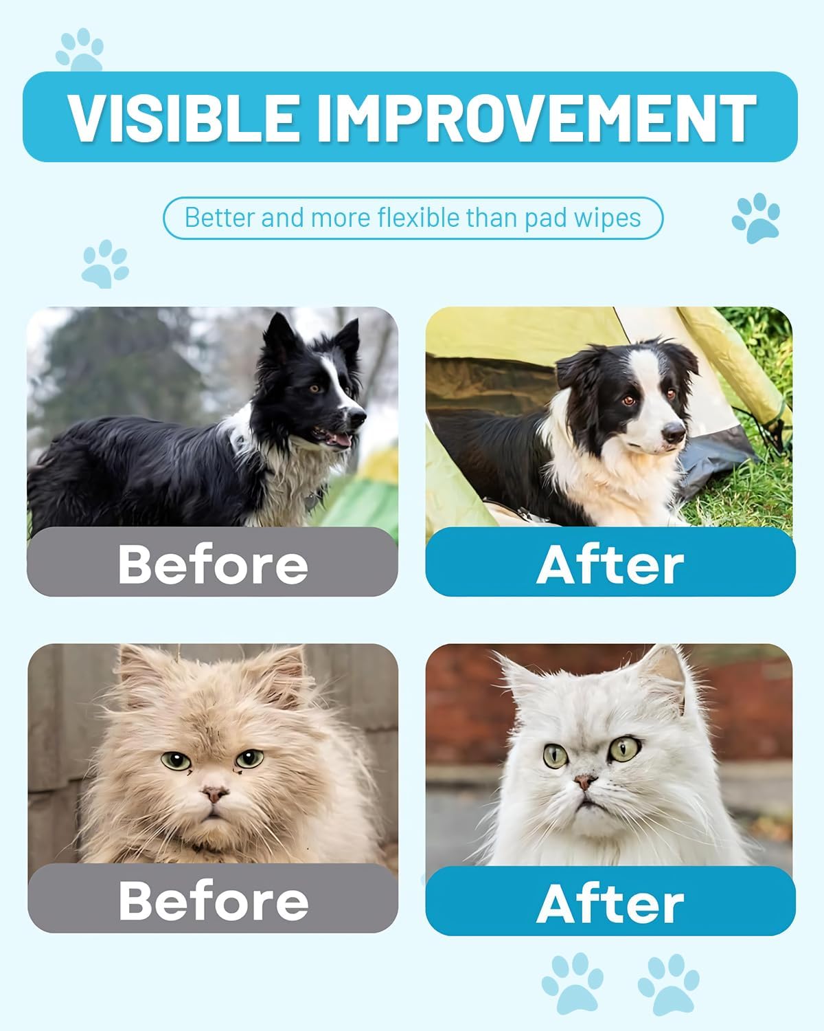 Super Thick Pet Disposable Glove Wipes redefine convenience in pet grooming, offering a premium solution for busy pet owners who demand effectiveness and gentleness. Each pack includes 6 generously sized gloves (9×9.8inch), specially designed with ultra-thick material to tackle the toughest messes without compromising on comfort.Unlike ordinary pet wipes, our super thick gloves feature a reinforced texture that lifts and traps dirt, pet hair, and sticky residues, while the nourishing blend of aloe extract and jojoba oil works to soothe and condition the skin. This hypoallergenic formula is rigorously tested to be fragrance-free, alcohol-free, and safe for sensitive pets, making it suitable for all life stages—from playful puppies to senior cats.The rinse-free design is a game-changer for pet care. Whether your furry friend has rolled in the mud, needs a post-meal face wipe, or requires a quick freshening up between baths, these gloves provide a hassle-free alternative to traditional bathing. The ergonomic fit ensures a secure grip, allowing you to clean hard-to-reach areas like between paw pads, inside ears, and around the tail without straining your hands.Pet parents will appreciate the practicality of the travel-friendly packaging. Weighing just 6.34oz per pack, it slips easily into a gym bag, travel luggage, or even a coat pocket—perfect for outdoor adventures, vet visits, or simply keeping in the car for unexpected messes. The eco-conscious design (disposable but responsibly made) balances convenience with sustainability, making it a guilt-free choice for daily use.Ideal for multi-pet households, the super thick gloves are durable enough for multiple uses per glove (depending on mess severity), offering exceptional value. The unscented formula is gentle on sensitive noses, while the deep cleansing action neutralizes odors at the source, leaving your pet smelling fresh and feeling pampered.For external use only. Keep out of pet’s mouth and eyes. Avoid ingestion.Invest in Super Thick Pet Disposable Glove Wipes today and experience the difference of professional-grade grooming in the palm of your hand. Your pet will love the gentle care, and you’ll wonder how you ever lived without this essential grooming tool.