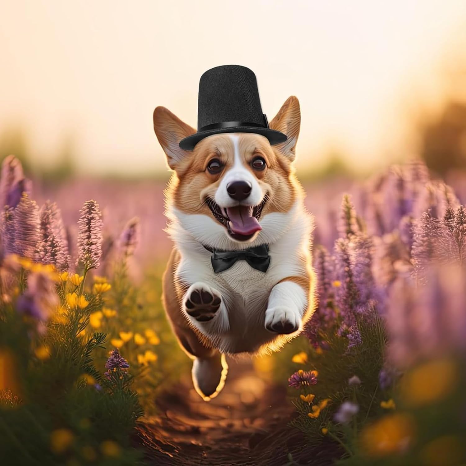 Litwlly Pet Dog Formal Accessories Set 2Pcs Dogs Top Hat with Bowtie Cat Wedding Tuxedo Necktie Costumes for Puppies Kittens You will receive a small pet top hat and a pet bow tie, simple suit can give your pet a formal look, perfect for puppies and kittens. The top hat with bowknot design adding extra charm and whimsy to your pet dog or cat, makes your furry friend more cute and attractive. The cute black hat has an adjustable chin strap, which can be adjusted according to your pet's head circumference, suitable for most small and medium-sized pets. Made of quality polyester material, soft, breathable and comfortable to wear, classic black style adds elegance to your pets and accentuates the festive atmosphere. Suitable for pet grooming, wedding, taking photos, participating in weddings, birthday parties, celebrations, graduations and so on