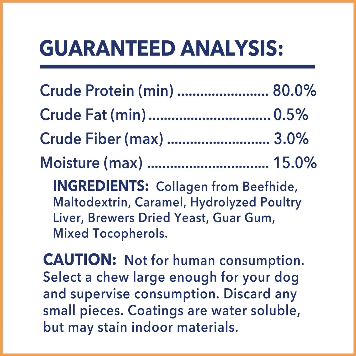 CareChewz are 100% collagen, a healthy choice for a daily chew that provides your dog with a long-lasting safe chew that combines excellent dental care and the benefits of all-natural collagen from beefhide. Made entirely in the USA with only collagen from USA Beefhide. These dog treats are manufactured following strict Global Food Safety Initiative standards. Disclaimer: Meant for intermittent usage. Select a chew large enough for your dog and supervise consumption. Discard any small pieces.