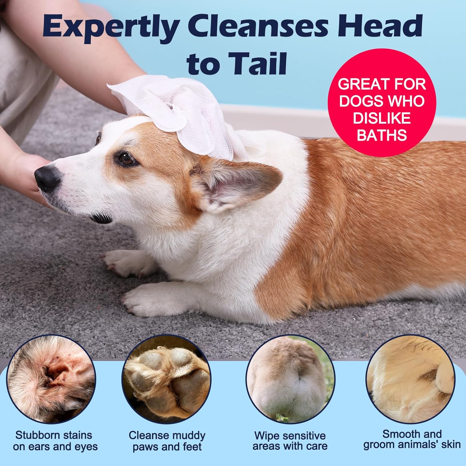 Rinse-Free Pet Grooming Gloves: Our pet gloves grooming for dogs effectively mitigate dirt, dander, and odors, leaving your pet fresh and clean. Nourish and smooth your pet's fur while supporting skin health and reducing fur problems. Perfect for both dogs and cats. Effortless Cleaning: These dog cleaning gloves make it easy to clean all areas of your pet's body, including hard-to-reach spots like between the toes and under the tail. Simply use a hand motion for better control and ease compared to traditional wipes. Mild Formula: Our dog cleaning wipes are infused with Chlorhexidine, Rose Hydrosol, Coconut Oil, Vitamin E, and Tea Tree Oil. Free from alcohol, fluorescent agents, and dyes, these gloves are gentle and non-irritating, providing relief from itching caused by skin infections. Versatile Use: Pet glove wipes for dogs ideal for busy owners, pets afraid of water, post-surgery pets, and during travel or cold weather. These cat cleaning gloves offer a quick and convenient cleaning solution when bathing is not feasible. Perfect for a hassle-free trip with your pet. Convenient Packaging: Each box of cat gloves for bathing contains 6 individually sealed packages. Simply tear the seal, extract the needed wipes, and gently clean your pet. Reseal the lid to keep wipes moist and fresh, ensuring a satisfying grooming experience. Veterinarian Recommended: Our cat wipes cleaning fur trusted by vets worldwide, UINPUP cleaning wipes provide professional care for your dogs and cats. Rest assured that you are providing professional care to your beloved companions. › See more product details