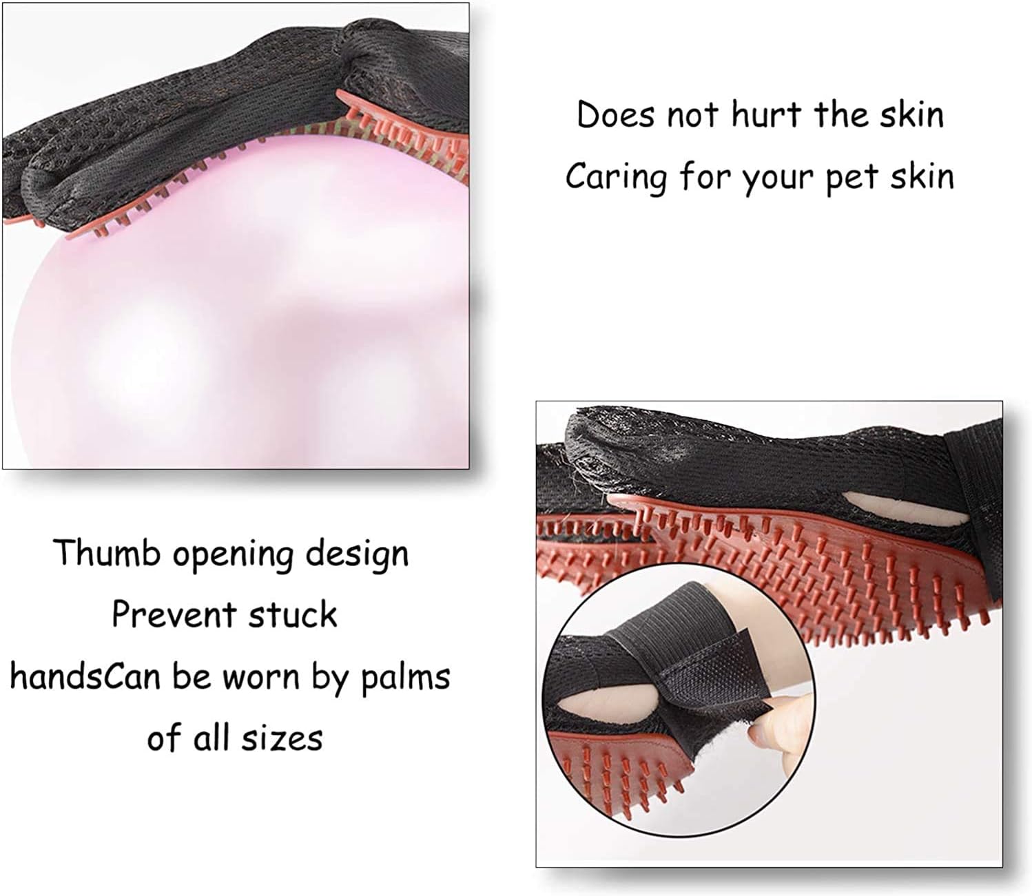 These flexible, gentle ,efficient slip-on grooming gloves allow you to brush away dirt, grime, dander and loose hair from cats, dogs and horses of all shapes and sizes. More importantly,the glove provides your pets with a wonderfully relaxing massage and grooming without hurting their skin. Product Description: *Color: Red 1 Pair of Gloves*Multi-function Deshedding Glove *Five-Finger Design for Both Left and Right Hand *Adjustable Wrist Strap*Lightweight and Breathable *Gentle Hair Remover Brush *Breathable and Fast-Drying Mesh Lining *Machine Washable ,Easy to Clean *Can be used dry or wet *Safe for Cats, Dogs and Other Pets A Healthier Home Gentle on the skin thanks to soft rubber tips, our groomer’s glove not only helps reduce the amount of hair left behind on furniture, clothes or in the car; it can help reduce allergens in the air for cleaner, healthier breathing. Packaging Includes: 2x Red Pet Hair Grooming gloves (1 left-hand and 1 right-hand)