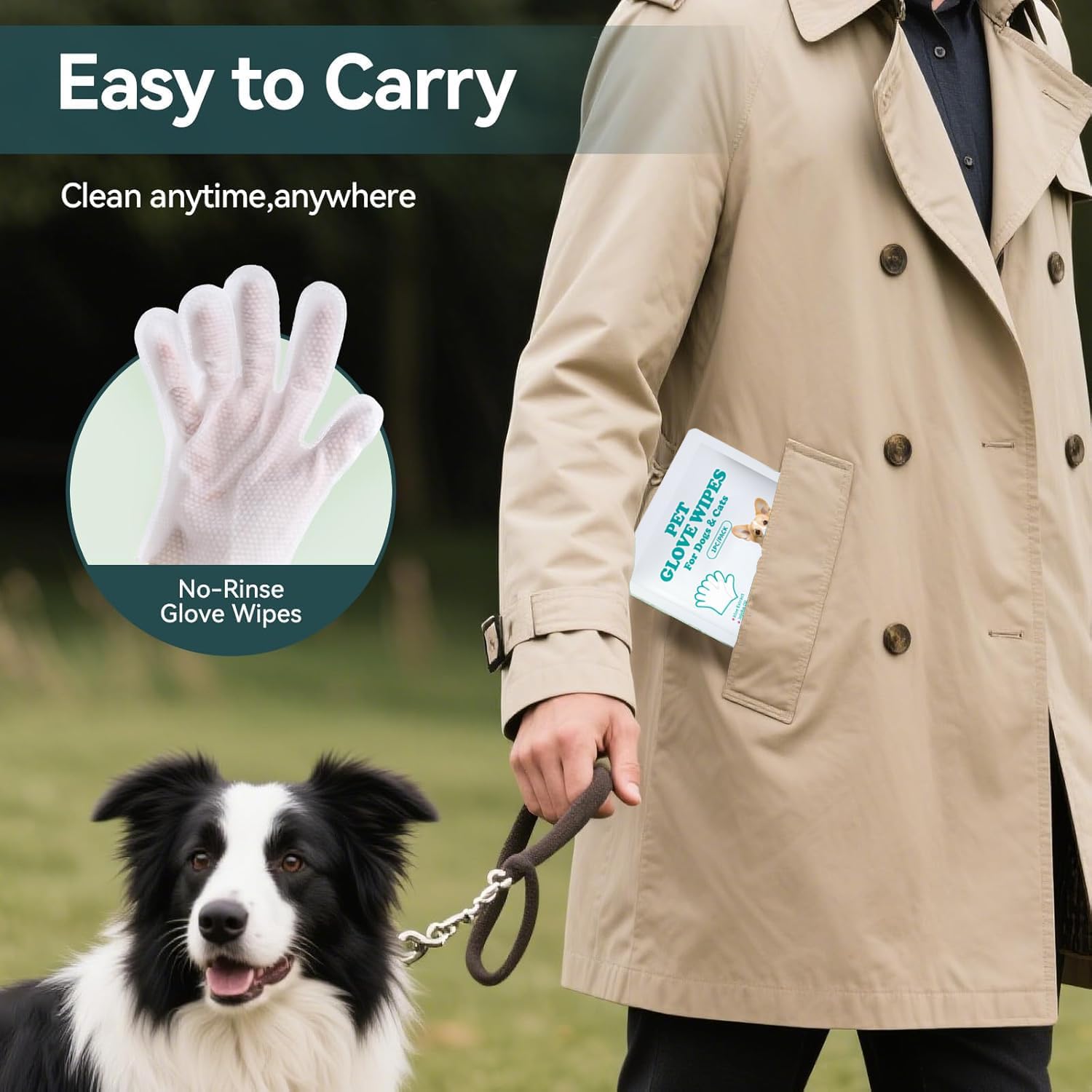 Transform pet grooming into a hassle-free experience with these innovative glove wipes for dogs and cats. Each pack contains 6 individually wrapped wipes that combine the functionality of a grooming glove with the convenience of a disposable wipe. Perfect for pets who fear water or when traditional bathing isn't practical, these unscented, hypoallergenic wipes provide thorough cleaning and deodorizing. The thickened, moisture-rich formula helps achieve fresh, non-sticky, and fluffy fur while being gentle enough for regular use. Ideal for newborn pets, pregnant or nursing animals, or pets recovering from illness when water bathing isn't optimal. The glove design ensures easy handling and complete coverage, reaching difficult spots with maximum control. These rinse-free wipes are especially handy for travel, quick clean-ups, and maintaining pet hygiene between baths. Safe if licked and extra gentle on your pet's coat, these wipes offer a practical solution for pet parents seeking efficient grooming alternatives.