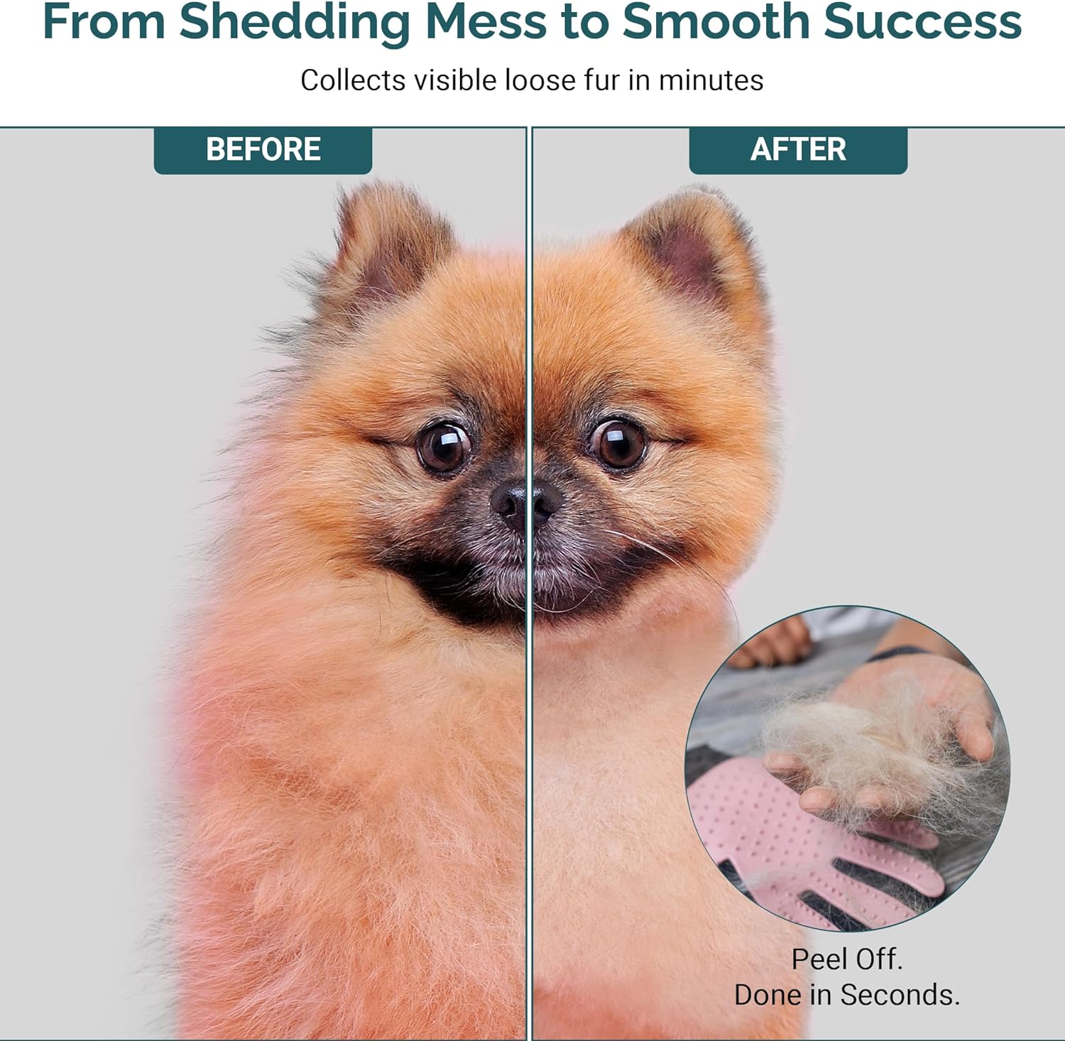 - Directions: Gently stroke your pet’s coat in the direction of hair growth., Gloves can be used wet during bathing or dry for daily grooming., Machine washable for easy cleaning., Peel collected fur from the glove after grooming., Place gloves on hands and adjust strap for comfort.