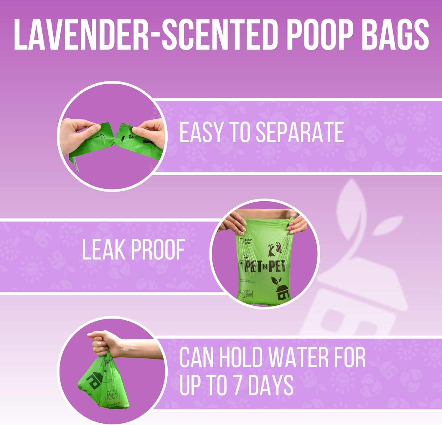 About this item 🍃 Lessen pet waste odors with our lavender-scented poop bag holders! Locking in the stink, these bags mask unpleasant smells for you and your furry friend. 🚿 Pet N Pet grooming wipes are your secret weapon for instantly refreshing your pet anytime, anywhere. Perfect for cleaning tear stains, freshening ears, tidying fur, and pampering those playful paws - just make sure the flap is sealed well for on-the-go freshness. 🐾 PET N PET doggie bags are 38% plant based & 62% PE. This gives you less to worry about during your walks with your pet buddy by eliminating 38% of the plastic. 🌱 Pamper your furry companion with these hypoallergenic wonders, crafted with ingredients such as plant fiber, cereals extraction extract, water, and benzalkonium chloride. Their gentle touch will have your pet feeling like royalty, while keeping sensitive skin and allergies at bay. 🐶 Our doggie poop bags have convenient perforations for easy grabbing. You can now manage your pet’s waste while still keeping them under control during walks. No more struggling to separate a bag from the roll! › See more product details