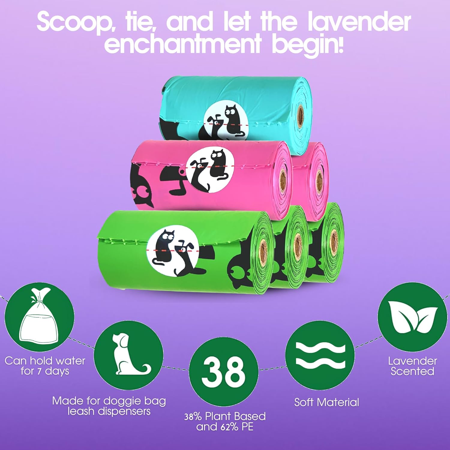 About this item 💜 Lessen pet waste odors with our lavender-scented poop bags! Locking in the stink, these bags mask unpleasant odor for you and your furry friend. 🌟 Our grooming wipes, infused with a soothing moisture, offer a gentle and stress-free waterless bathing alternative, perfect for pets who are afraid of traditional baths. Treat your pet, leaving them clean and joyful, minus water worries. 🌈 Add some color to your furry friend's walks with our trendy and stylish rainbow dog poop bags! Featuring a flat bottom and secure knot space, these easy-to-use bags keep contents and odor contained. 🚿 Pet N Pet grooming wipes are your secret weapon for instantly refreshing your pet anytime, anywhere. Perfect for cleaning tear stains, freshening ears, tidying fur, and pampering those playful paws - just make sure the flap is sealed well for on-the-go freshness. 🐾 PET N PET doggie bags are 38% plant based & 62% PE. This gives you less to worry about during your walks with your pet buddy by eliminating 38% of the plastic. › See more product details