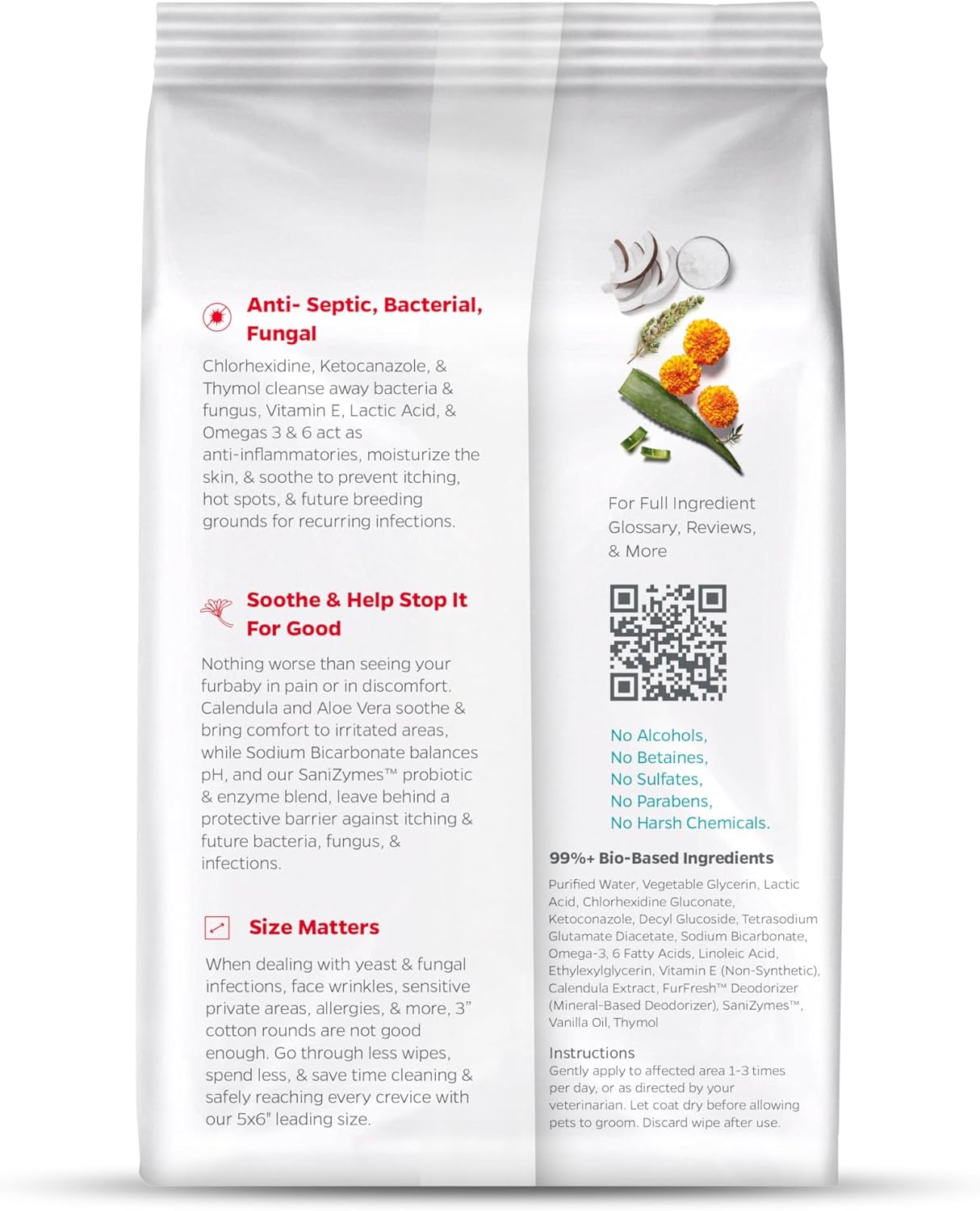 If your cat or pup is scratching again, licking the same spot raw, or shaking their head nonstop… you’re not alone. It’s always something, and it never hits at a convenient time. Think itchy patches, moisture-prone folds, and gunky ears that show up out of nowhere. That’s why we made Pet WiPees Formulated Wipes: no-rinse wipes for dogs & cats, designed to clean up the real-life messes pet moms deal with, without mystery chemicals or vet-level drama. Safe enough for daily use, strong enough to handle ear gunk and everyday odors, and made with love (and science) for everything from folds to paws. Each wipe is powered by chlorhexidine and ketoconazole, trusted ingredients for cleansing and deodorizing areas like skin folds, paws, and between the toes. External use only. Avoid contact with eyes and the ear canal. And because they’re 98% bio-based and pH-balanced, you can use them on the regular without drying out their skin or stressing yours. Less mess. Less smell. Fewer “what even is that?” moments. These are wipes with chlorhexidine for dogs & cats who don’t always make care easy, and furmoms who don’t back down from giving it anyway. Because you’re not just cleaning a spot. You’re protecting their comfort, your peace of mind, and the bond you share, one wipe at a time.