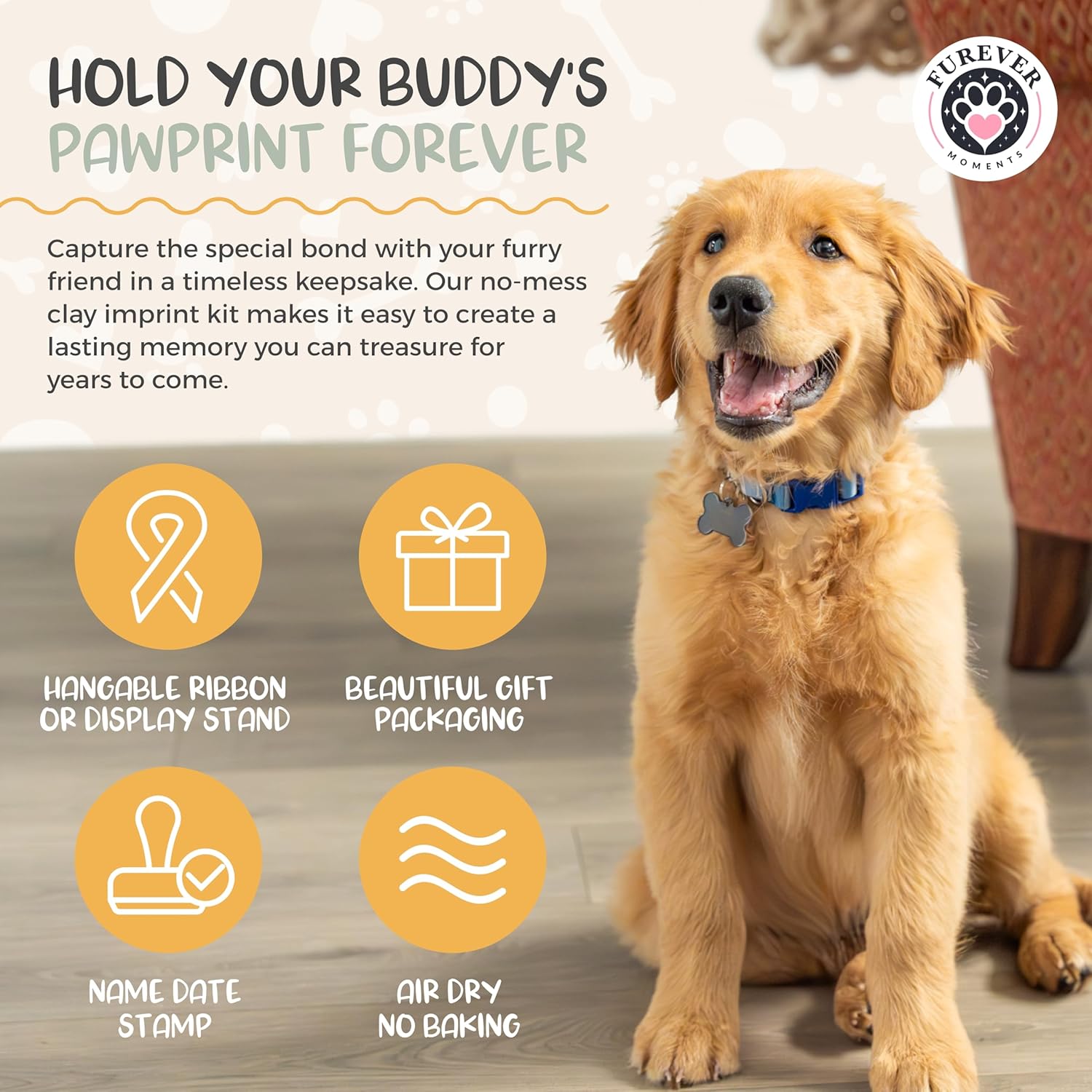 About this item πππππππππ ππππππππ ππππππ: Comes with 2 display stands, your choice of ribbon & twine hangers, paints, brushes, letter/date stamps, heart & circle forms, and enough clay for 2 dog paw ornaments πΎ"π ππππππ" πππππππππ ππππ πππ: Every pet parent remembers bringing home their energetic little ball of fur! Now you can imprint their paw print forever into our DIY pet memorial dog ornament kit πΆπππ% πππππ πππππ : Safe for dogs and cats alike, the inkless clay paw print kit is harmless to little toe beans, while (bonus!) water-based paints make this paw print stamp the ideal dog gift π¨π ππ πππ ππ π πππππππ ππππ ππππ: With step by step instructions, you'll be creating a dog print kit masterpiece in no time. No baking required! Simply air-dry for up to 4 days, and add your creative flair πππππππ πππ πππ π π ππ πππ ππππππ: A pet keepsake that you can personalize with their name and adoption date - grab a pet paw print kit today! They make purr-fect gifts for dogs and dog owners βΊ See more product details