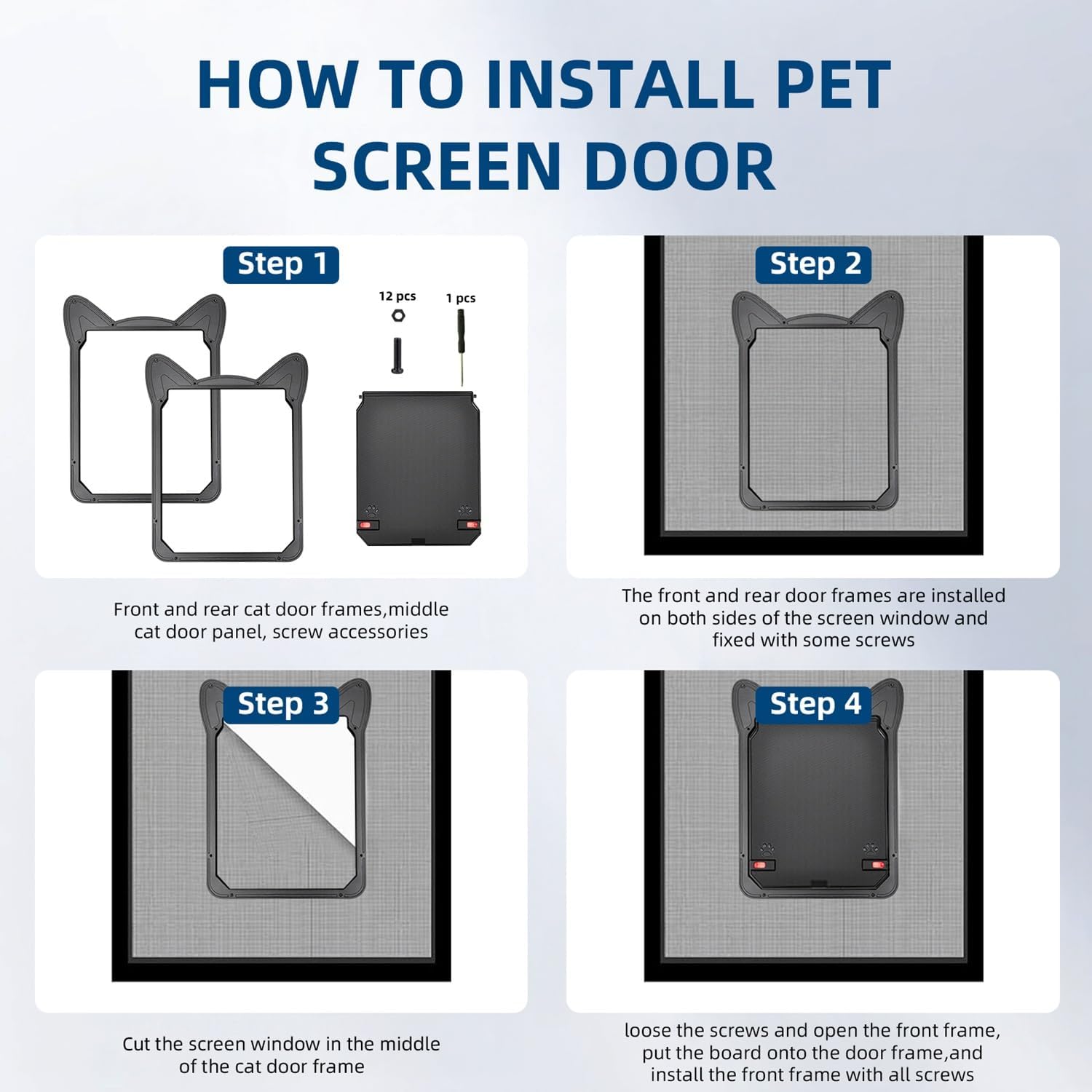 About this item 【Install-Easy Window Cat Door】: Quick setup with no drills or complex tools required; Just use a small knife to cut the screen window and fix the cat door with screws 【Sealed Against Bugs】: Solid, sealing magnetic flap + tight fit against your screen effectively blocks insects when closed → Let cats explore freely while significantly reducing the entry of insects indoors 【All-Weather Cat Window Door】: Heavy-duty PVC frame & SOLID flap withstands rain, sun, and pet claws → Enjoy years of reliable, worry-free outdoor access! Fits standard single/double-hung windows 【Skip the Interior Door!】: Unlike a cat door for interior door, this installs DIRECTLY in your window screen for true outdoor freedom → No more multiple doors - cats go straight outside 【Upper Floor Cat Owners!】: Can't install a cat door for exterior door? → This pet door for window gives balcony/patio access safely › See more product details