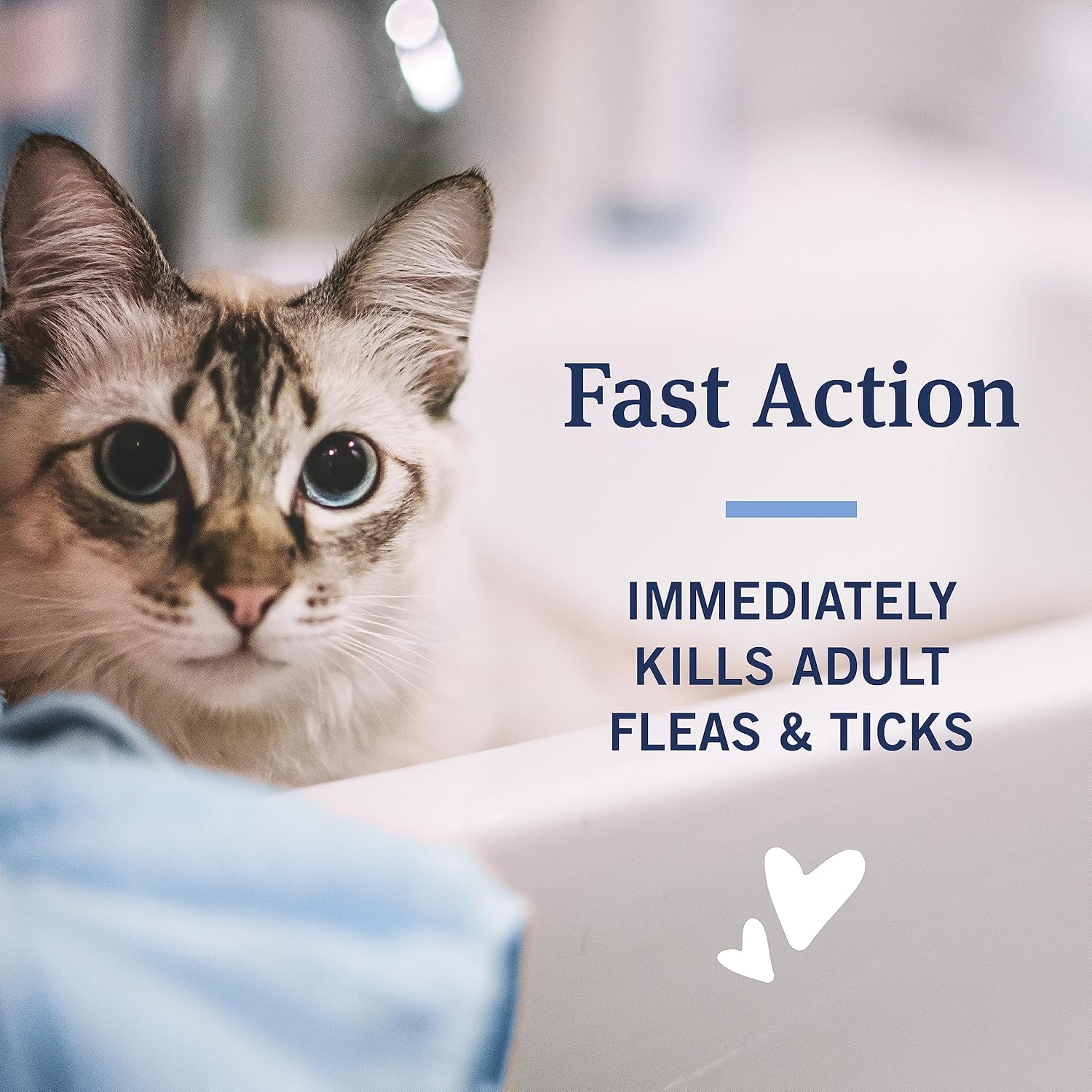 - Directions: It is a violation of Federal law to use this product in a manner inconsistent with its labeling. USE RESTRICTIONS Do not apply to pets less than 12 weeks old. Consult a veterinarian before applying this product on medicated, debilitated, aged, pregnant, or nursing animals. Sensitivities may occur after using any pesticide product for pets. If signs of sensitivity occur bathe your pet with mild soap and rinse with large amounts of water. If signs continue, consult a veterinarian immediately. Do not apply more than 2 fl. oz per application. Wet cat's coat thoroughly. Shake well before using. Pour shampoo into the cup of your hand. Starting at the head and working back, work up a lather with this quick lathering formula, being sure that the lather is worked thoroughly into the cat's coat down to the skin. Allow lather to stand 5 minutes, then rinse completely and towel dry. It should not be necessary to repeat the shampoo application unless the animal is excessively dirty. Kills flea and ticks fast. Repeat every 30 days.