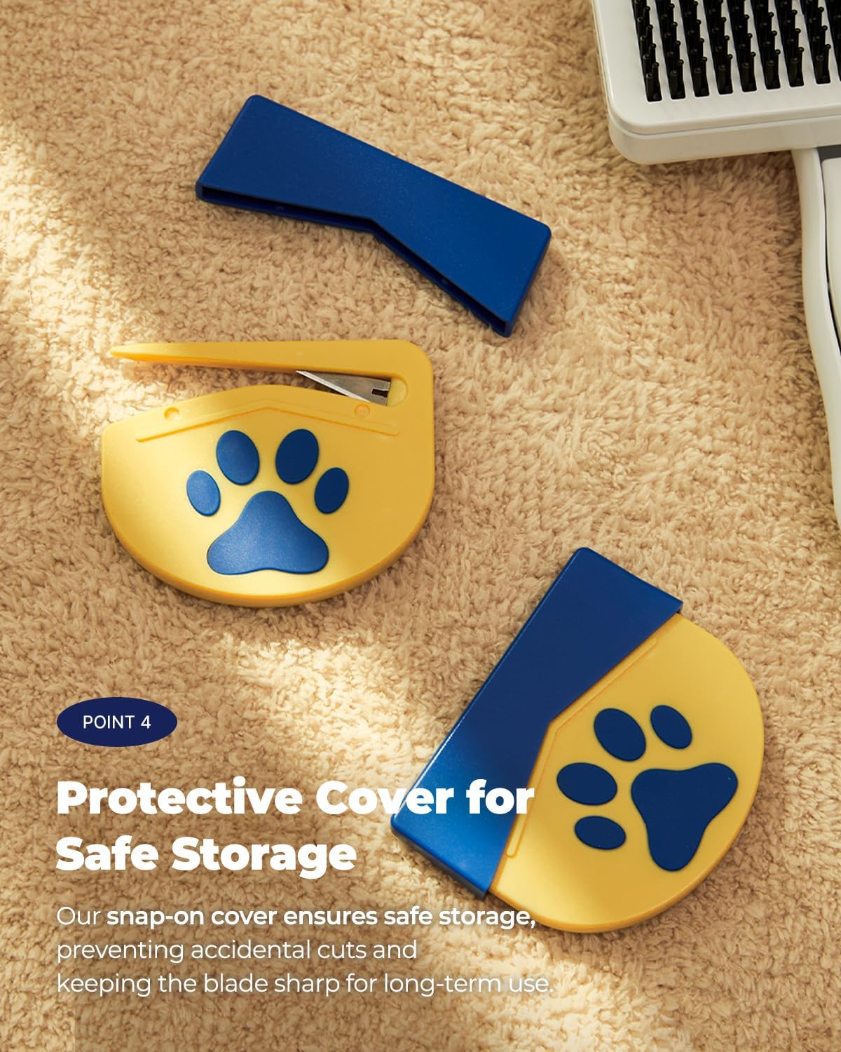 EFFORTLESS MAT & KNOT REMOVAL: Say goodbye to stubborn tangles! Our precision steel blade effortlessly cuts through mats and knots, making grooming quick and painless for your furry friend. SAFE & PET-FRIENDLY DESIGN: Engineered with a safety blade, ensuring a gentle yet effective grooming experience without scratching or irritating your pet’s skin. DURABLE AND LONG-LASTING: Crafted with high-quality, rust-resistant, and sturdy steel blade for long-lasting durability. ERGONOMIC & NON-SLIP GRIP: Designed with a non-slip comfort grip, providing better control and precision during grooming, reducing strain on your hands while keeping your pet comfortable. SUITABLE FOR ALL FUR TYPES: Ideal for curly-haired, long-haired, or thick-coated breeds, this must-have grooming tool prevents matting, promotes healthy fur, and enhances your pet’s natural shine. › See more product details